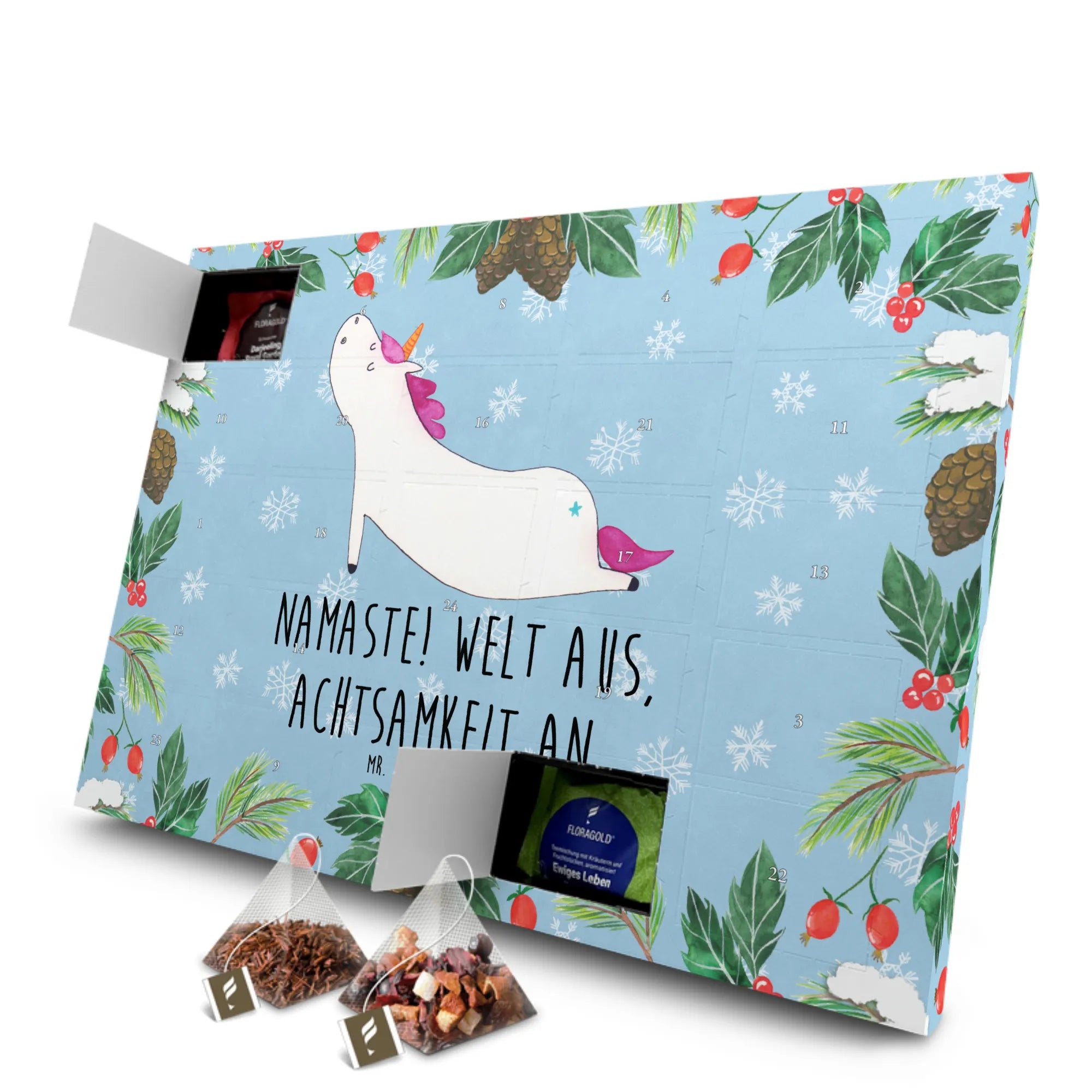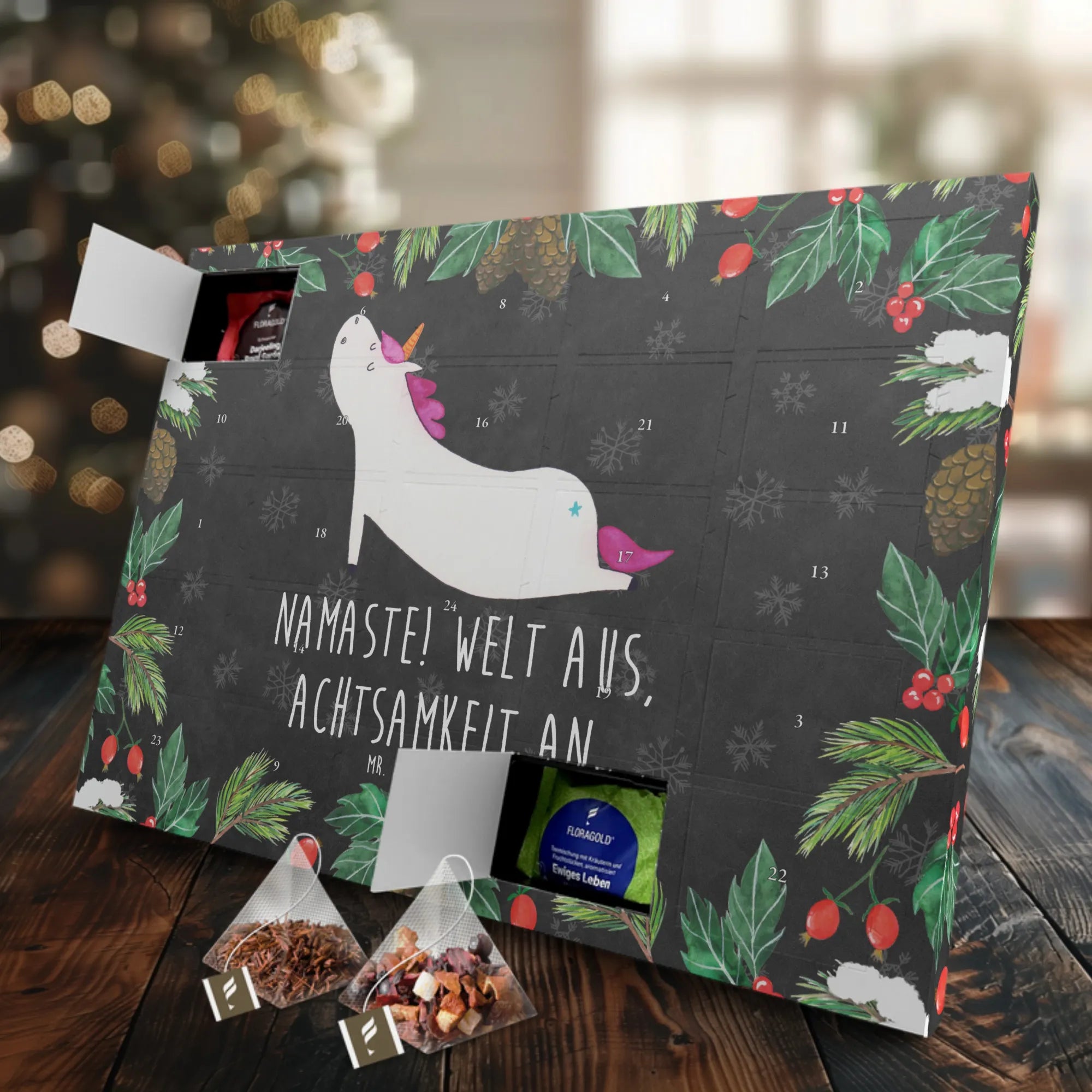 Entdecke den zauberhaften Tee Adventskalender Einhorn Yoga von Mr. & Mrs. Panda! Dieser wunderschöne Adventskalender ist nicht nur ein Blickfang, sondern auch das perfekte Geschenk für alle Einhorn-Fans, Yoga-Liebhaber und Teegenießer. Mit einem liebevoll gestalteten Motiv eines Yoga-Einhorns, das bei jedem Anblick für Entspannung sorgt, bringst du Freude in die Vorweihnachtszeit.