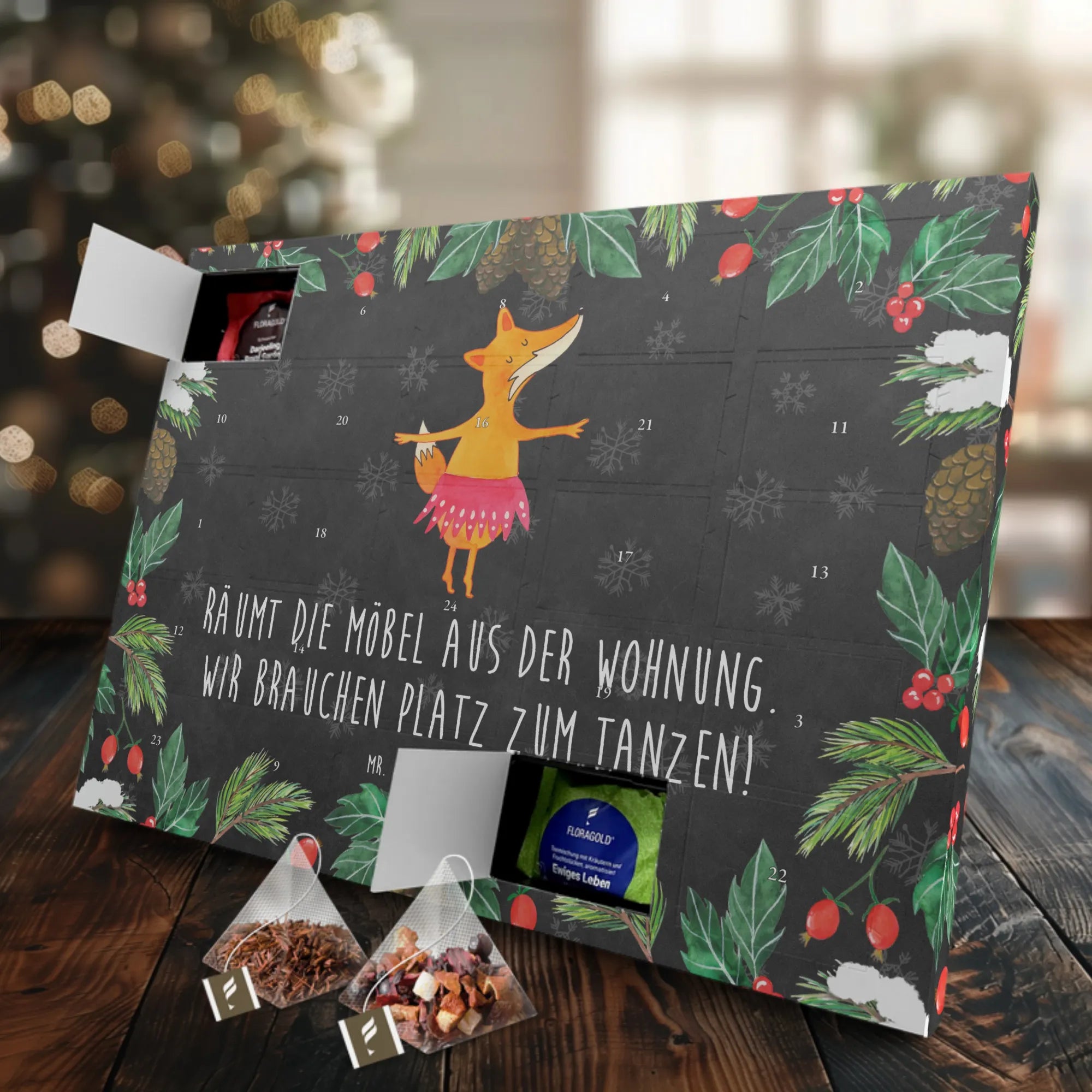 Der wunderschöne Tee Adventskalender "Fuchs Ballerina" von Mr. & Mrs. Panda ist das perfekte Geschenk für alle, die die Freude am Tanzen und die zauberhafte Welt der Füchse lieben. Mit liebevoll gestalteten Motiven und Sprüchen bringt dieser Adventskalender nicht nur Farbe in deinen Advent, sondern auch eine zauberhafte Vorfreude auf die bevorstehenden Feierlichkeiten. "Räumt die Möbel aus der Wohnung. Wir brauchen Platz zum Tanzen!" ist der Slogan, der dich dazu einlädt, Platz für Freude und Bewegungen zu schaffen.