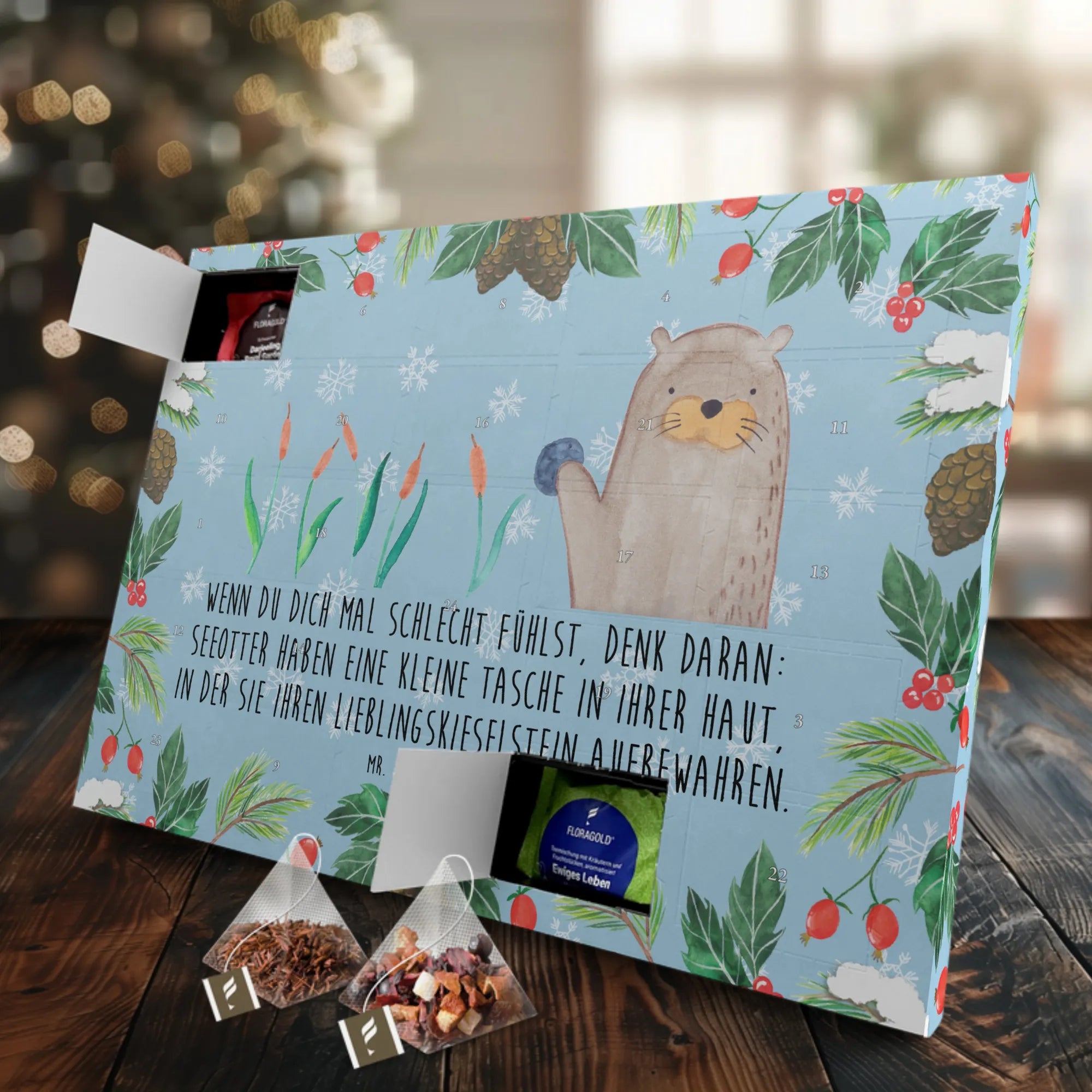 Du suchst nach dem perfekten Adventskalender für die kalte Winterzeit? Der Tee Adventskalender mit dem bezaubernden Otter-Motiv aus der Otter-Kollektion von Mr. & Mrs. Panda ist genau das richtige Geschenk! Dieser Adventskalender ist nicht nur äußerlich schön, sondern auch innerlich vollgepackt mit 24 hochwertigen Teesorten im Pyramidenbeutel.