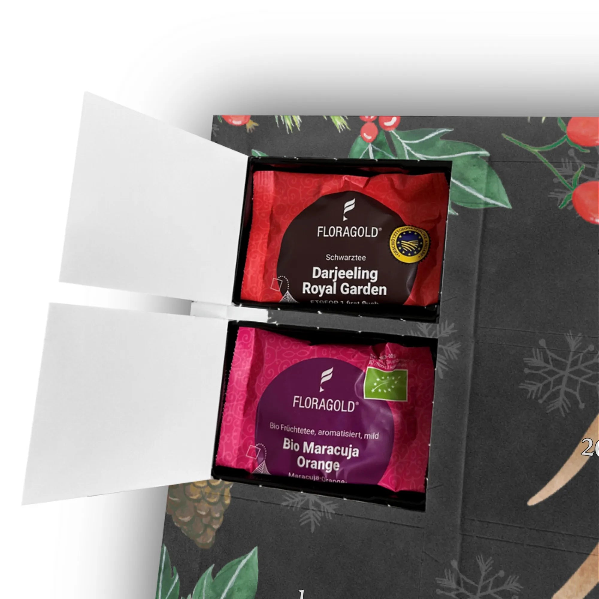 Der Kalender ist gefüllt mit 24 einzeln verpackten hochwertigen Teesorten im Pyramidenbeutel, darunter köstliche Früchtetees, Schwarztees und Kräutertees. Damit hast Du für jeden Adventstag etwas Besonderes und kannst die Vielfalt der Teewelt erleben!