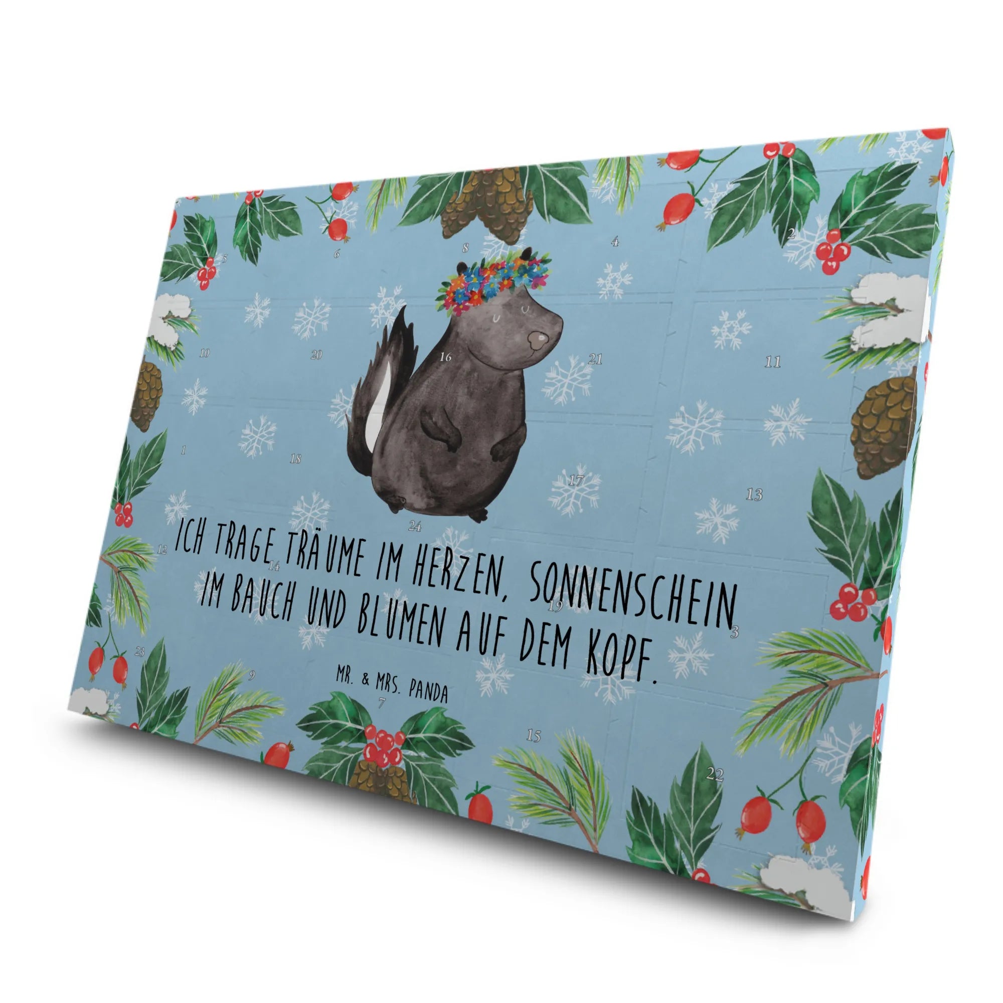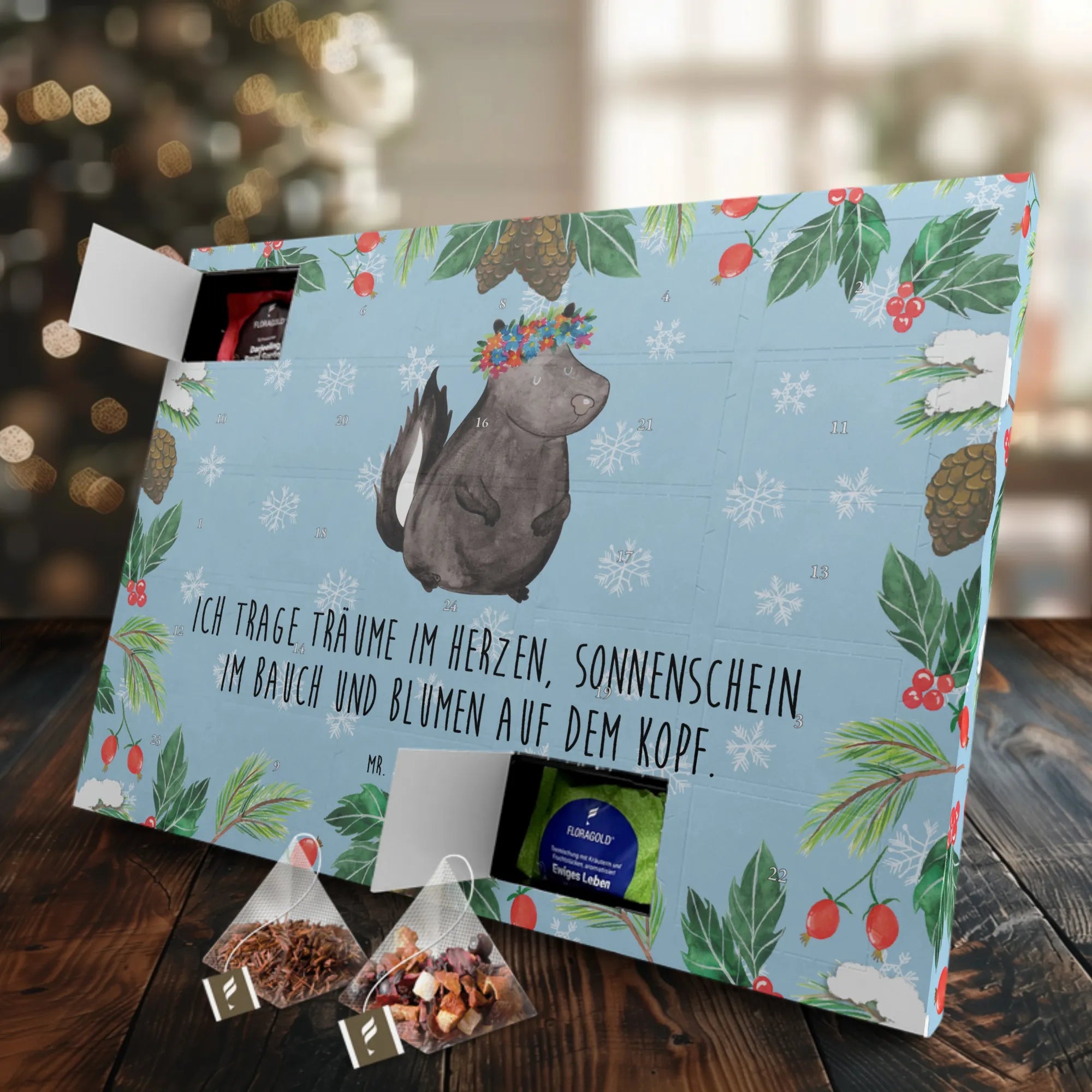 Der Tee Adventskalender "Stinktier Blumenmädchen" aus der wundervollen Stinktier-Kollektion von Mr. & Mrs. Panda ist der perfekte Begleiter für die winterliche Vorweihnachtszeit. Dieser liebevoll gestaltete Adventskalender ist nicht nur ein echter Blickfang, sondern bringt auch täglich eine neue, köstliche Teesorte in dein Leben.