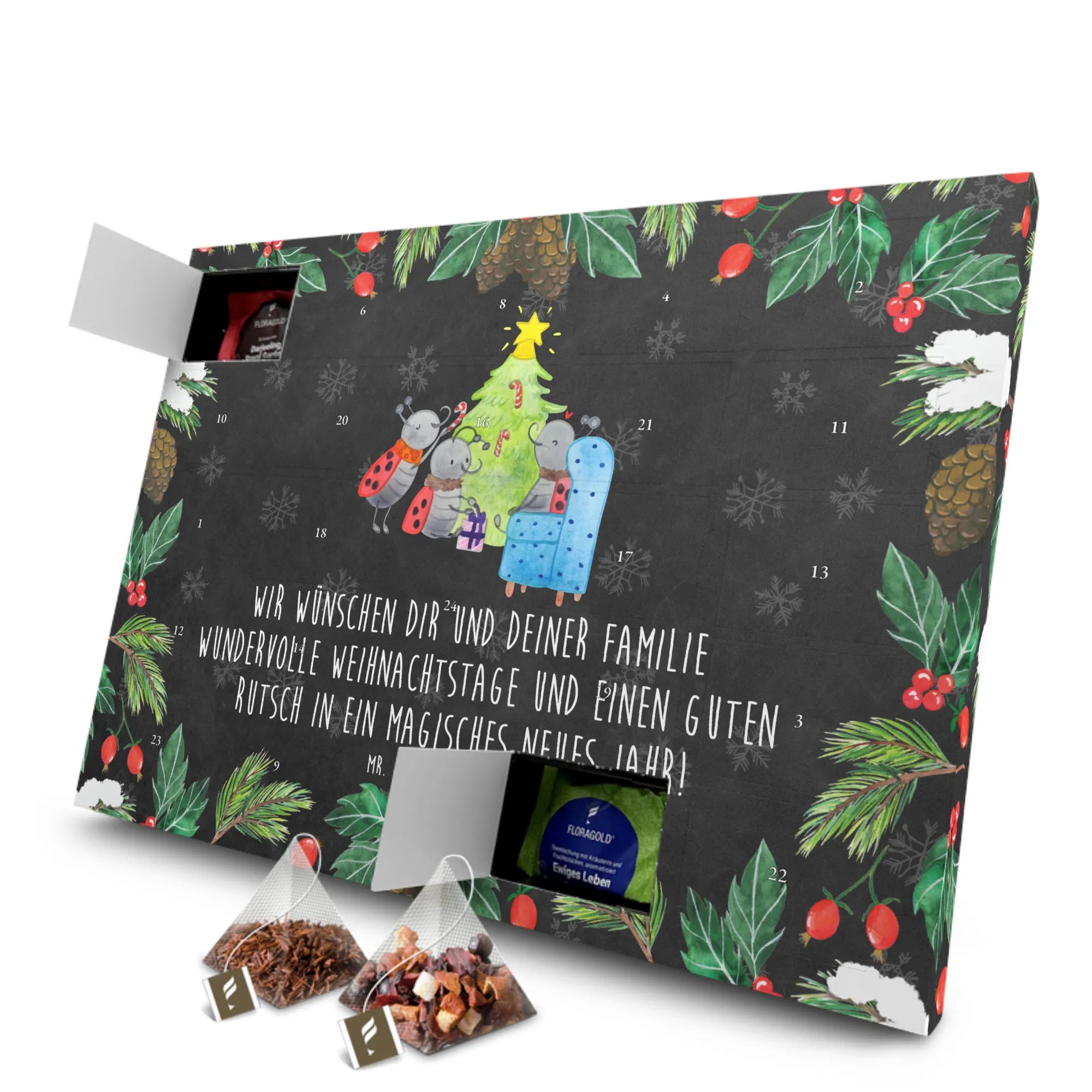 Der Tee Adventskalender Weihnachten Smörle von Mr. & Mrs. Panda ist das perfekte Geschenk für die kalte Jahreszeit! Mit liebevoll gestalteten Motiven aus unserer Winter Kollektion entführt er dich in ein zauberhaftes Weihnachtswunderland. Auf der Vorderseite siehst du fröhliche Marienkäfer, die um einen festlich geschmückten Weihnachtsbaum herumwuseln und Geschenke auspacken. Die Szene weckt Kindheitserinnerungen und strahlt pure Gemütlichkeit aus.