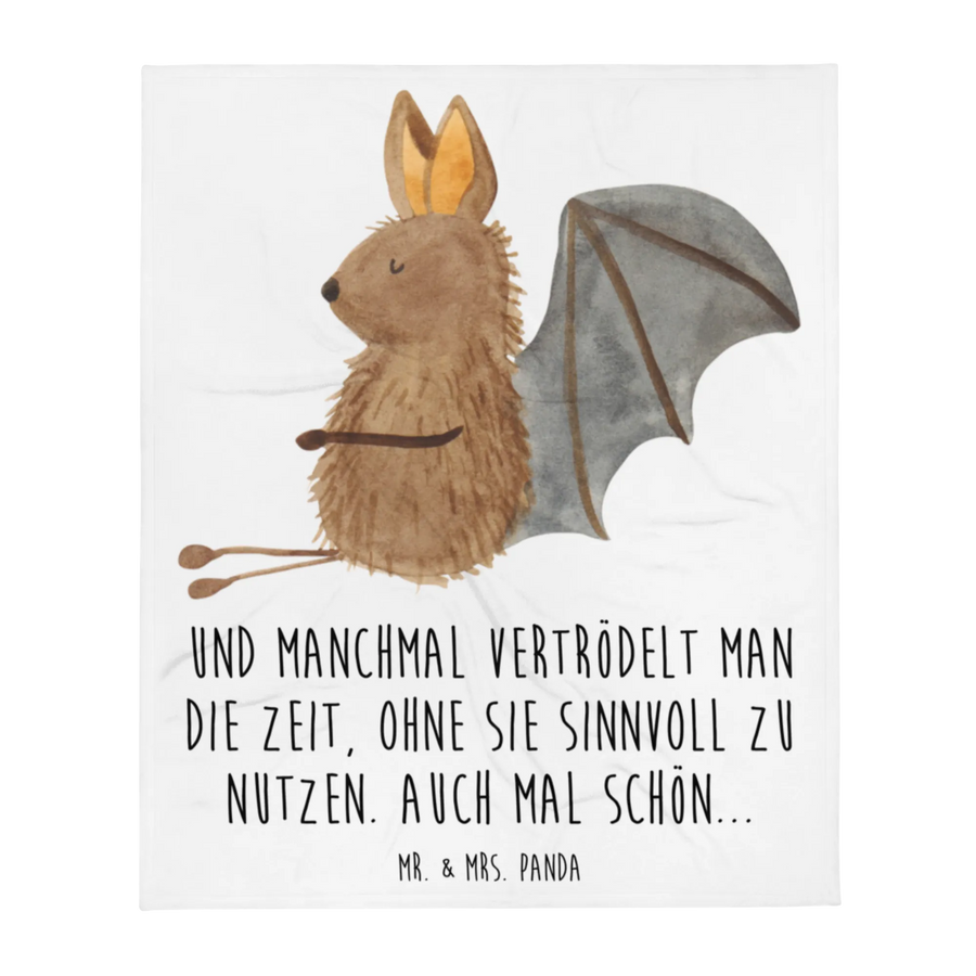 Kuscheldecke Fledermaus Sitzen - mit Spruch - Weiß