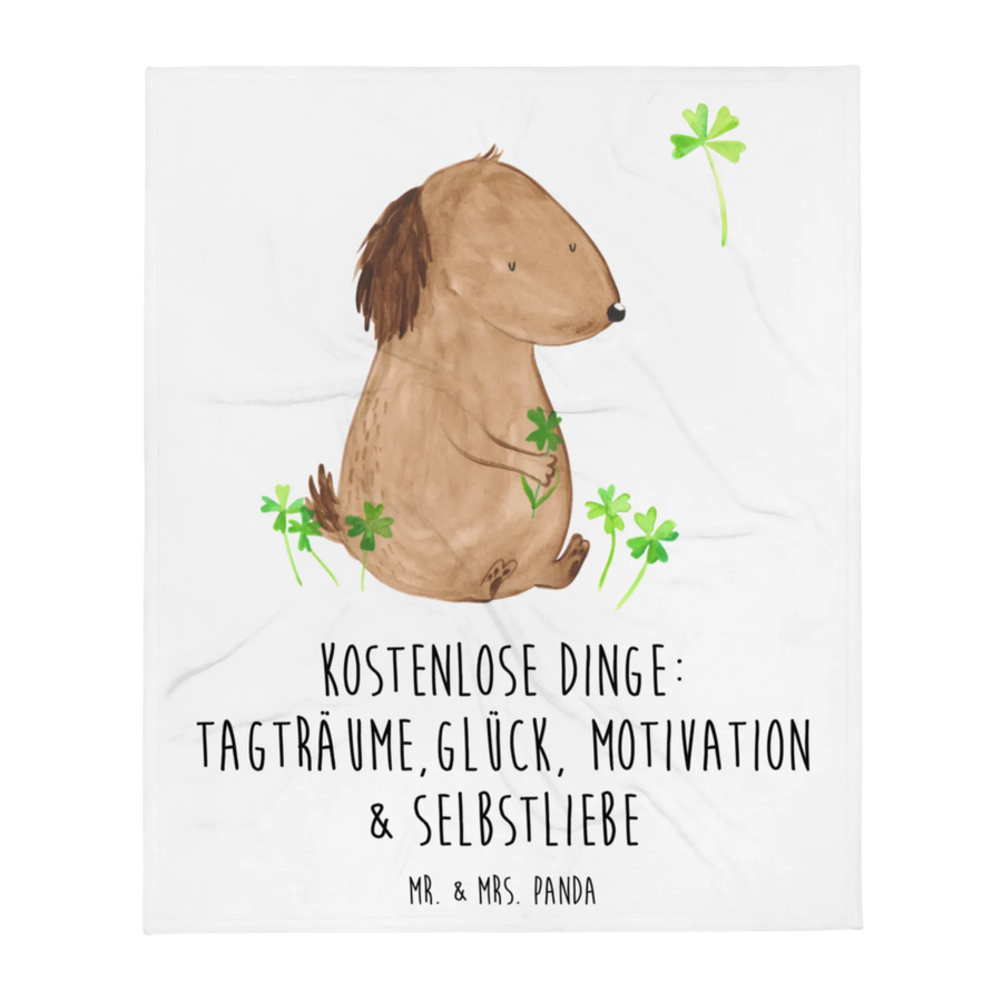 Kuscheldecke Hund Kleeblatt - mit Spruch - Weiß
