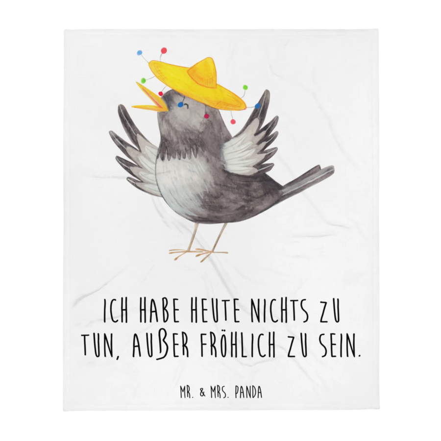 Kuscheldecke Rabe Sombrero - mit Spruch - Weiß