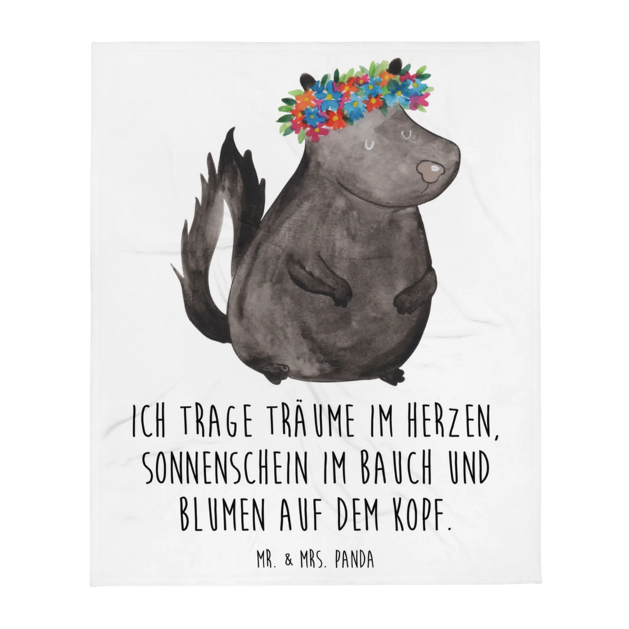 Kuscheldecke Stinktier Blumenmaedchen - mit Spruch - Weiß