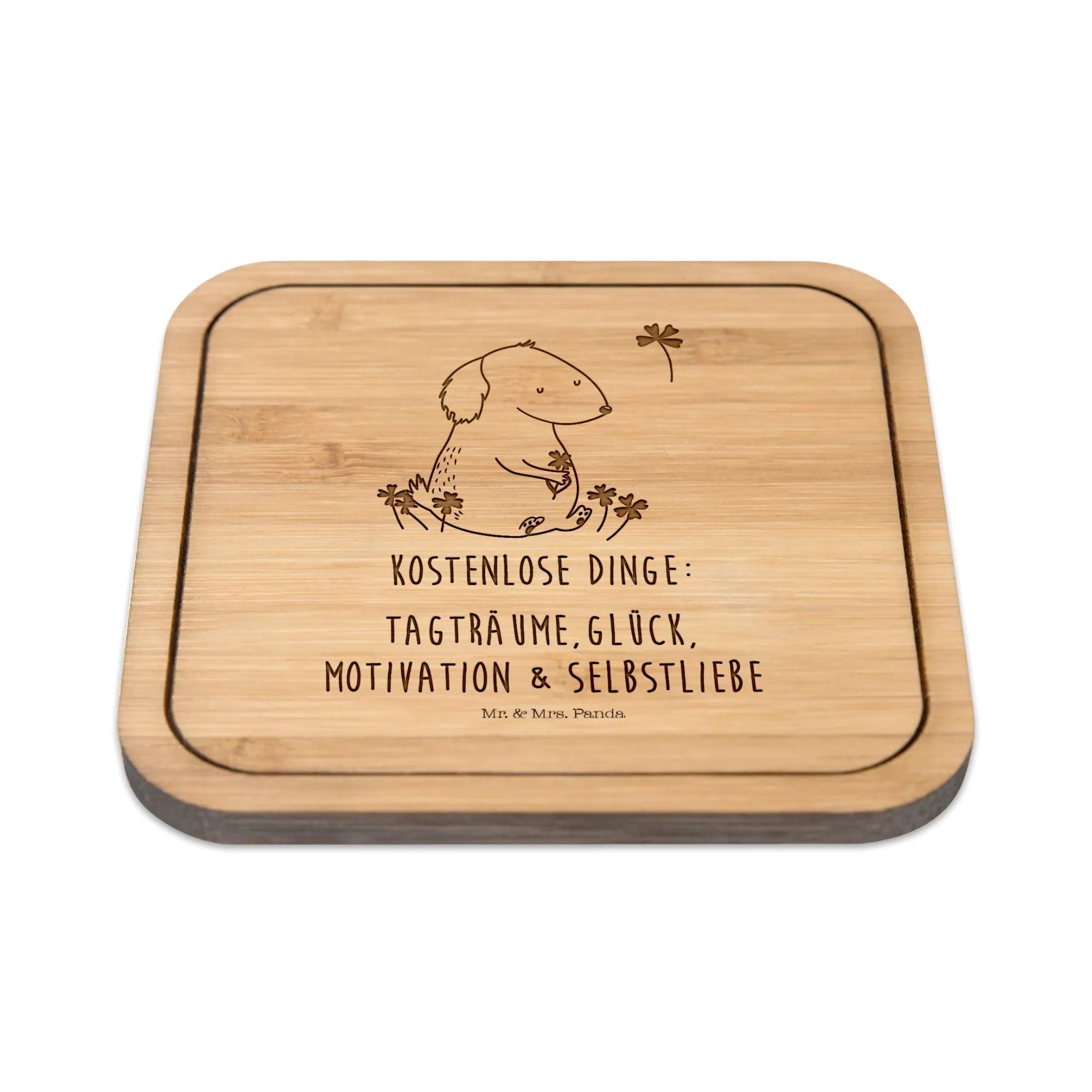 Dieser charmante Getränkeuntersetzer aus der Hunde Kollektion von Mr. & Mrs. Panda bringt Freude auf deinen Tisch. Das niedliche Motiv zeigt einen süßen Hund mit einem Kleeblatt und den herzlichen Spruch: „Es gibt Dinge, die man für Geld nicht kaufen kann. Und machen diese Dinge das Leben nicht erst richtig lebenswert?!“ Dazu der Slogan „Kostenlose Dinge: Tagträume, Glück, Motivation & Selbstliebe“ – ein kleiner täglicher Glücksbringer. 😊