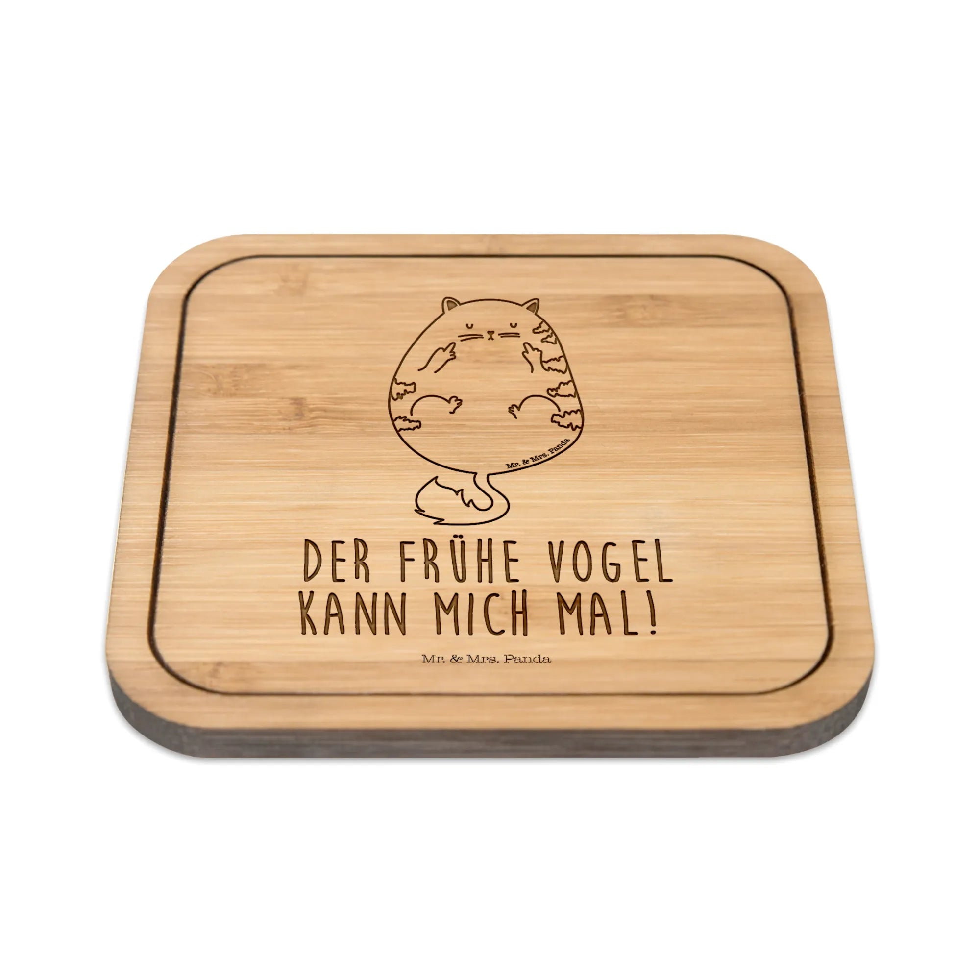 Untersetzer quadratisch Katze Frühaufsteher - mit Spruch