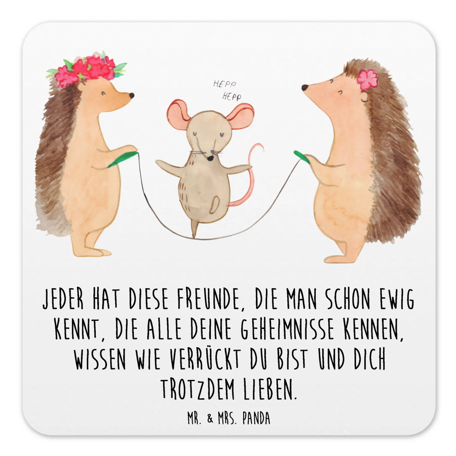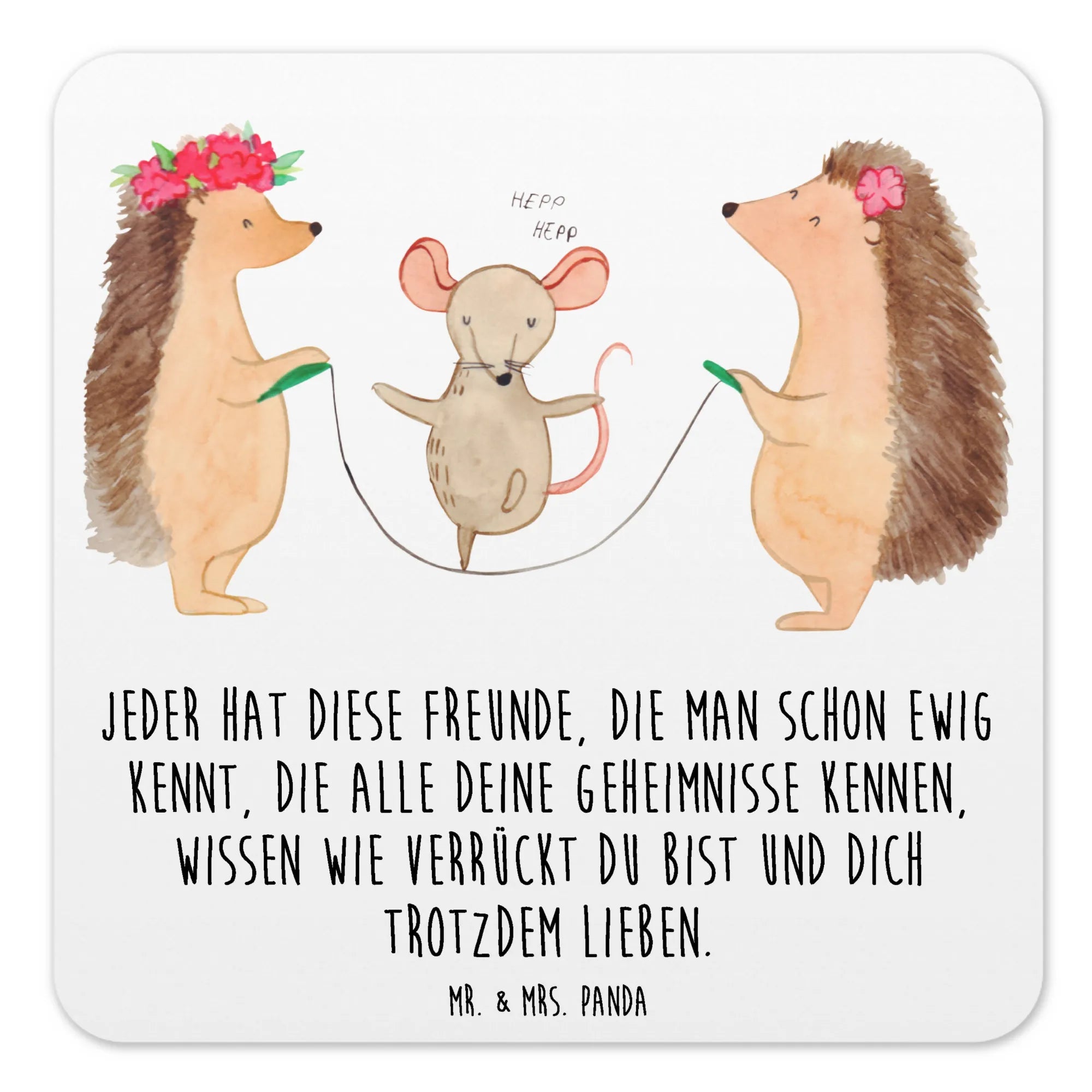 Das verspielte Igel Seilhüpfen-Motiv zeigt zwei süße Igel und eine quirlige Maus, die mit großer Begeisterung Seilspringen. Ihre glücklichen Gesichter und die ausgelassene Stimmung sind einfach bezaubernd. Der liebevolle Spruch 'Jeder hat diese Freunde, die man schon ewig kennt, die alle deine Geheimnisse kennen, wissen wie verrückt du bist und dich trotzdem lieben' bringt es auf den Punkt: Wahre Freundschaft ist ein wertvolles Geschenk. Die innigen Verbindungen zu unseren liebsten Freunden sind es, die unser Leben so besonders machen.