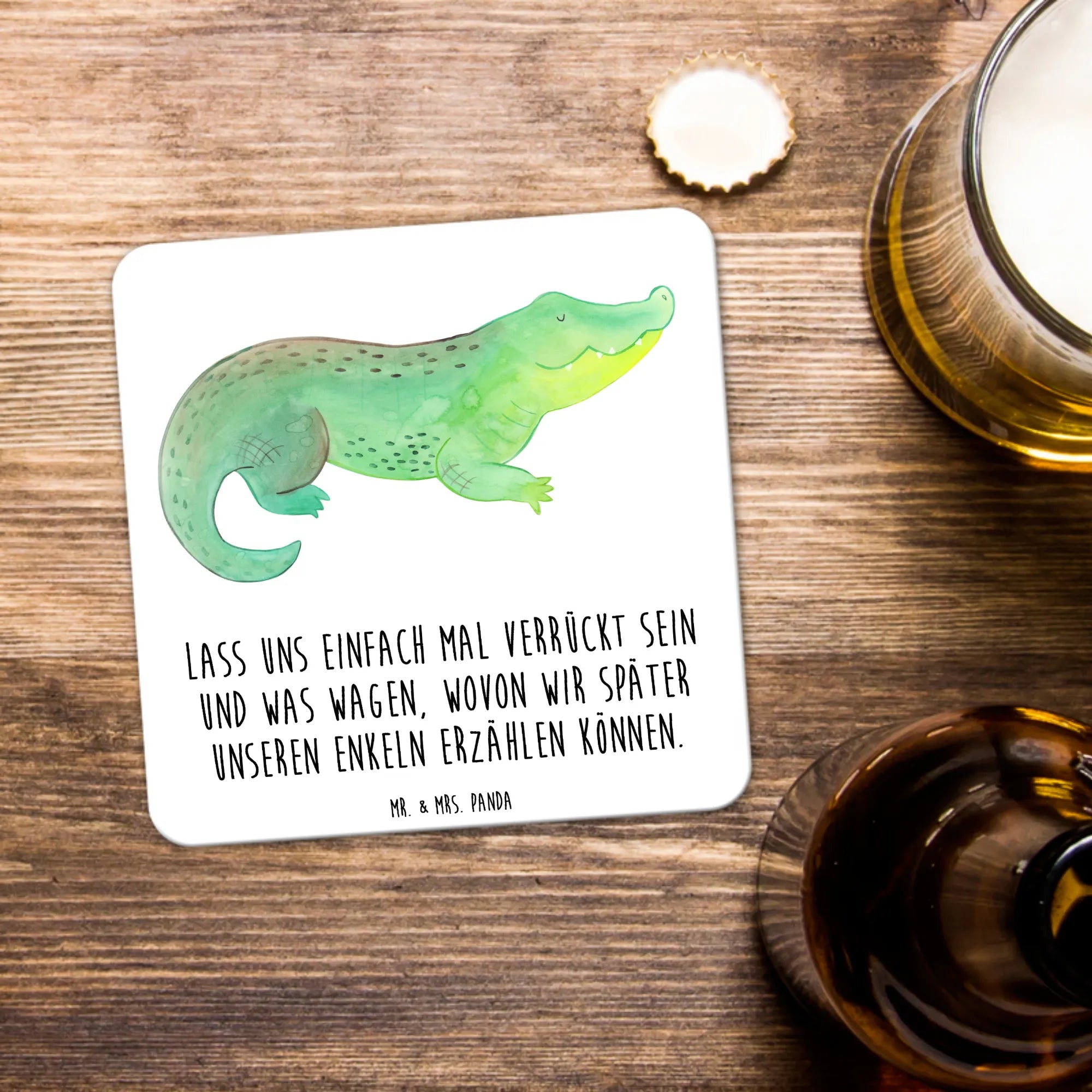 Entdecke das Untersetzer Set „Krokodil“ aus der Meerestiere-Kollektion von Mr. & Mrs. Panda. Dieses liebevoll illustrierte Glasuntersetzer-Set bringt Urlaubstimmung auf deinen Tisch. Das freundlich lächelnde Krokodil in sanften Grün- und Blautönen wurde von Mrs. Panda als Aquarell entworfen und überzeugt durch eine warme, verspielte Atmosphäre.
