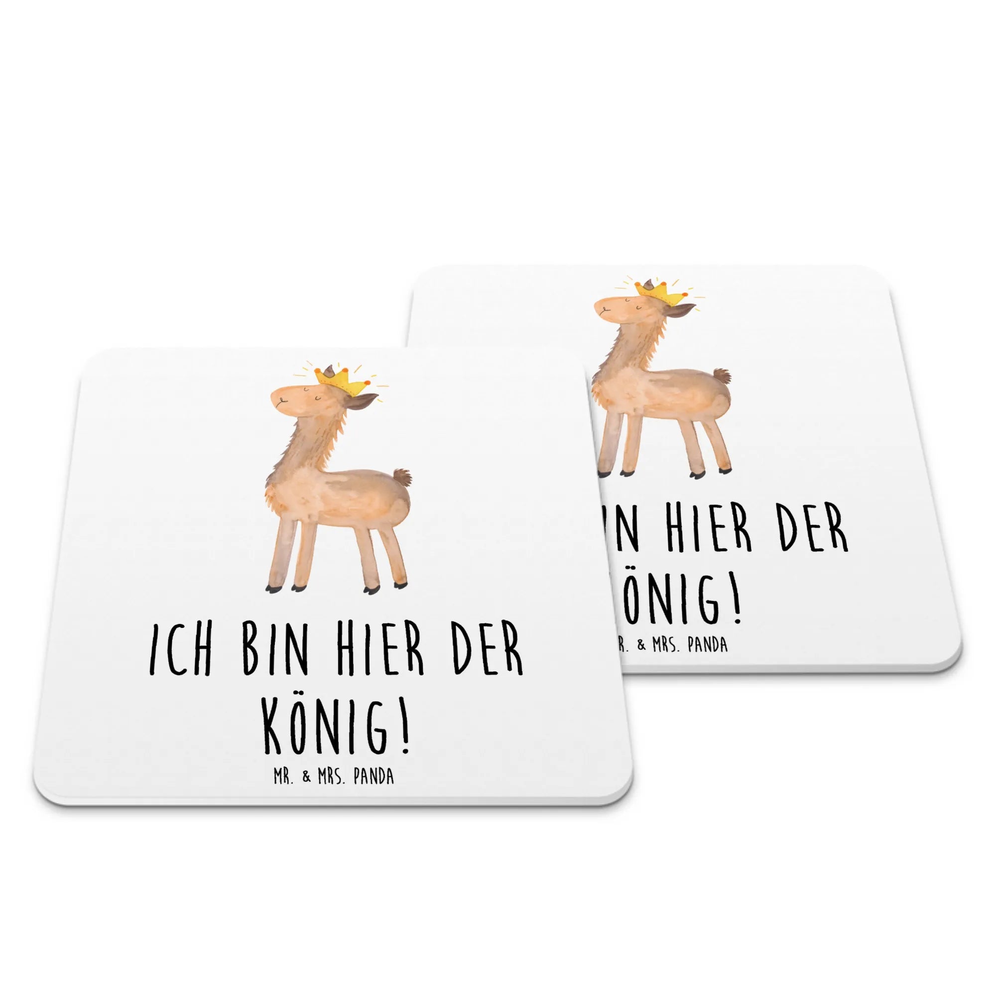 Fazit: Ein schöner, nützlicher und liebevoll gestalteter Untersetzer, der als Tassenuntersetzer, Glasuntersetzer und Tischuntersetzer gleichermaßen überzeugt. Verschenke Freude, Stil und Schutz für Möbel – verschenke das Lama König Untersetzer Set von Mr. & Mrs. Panda! 🎉