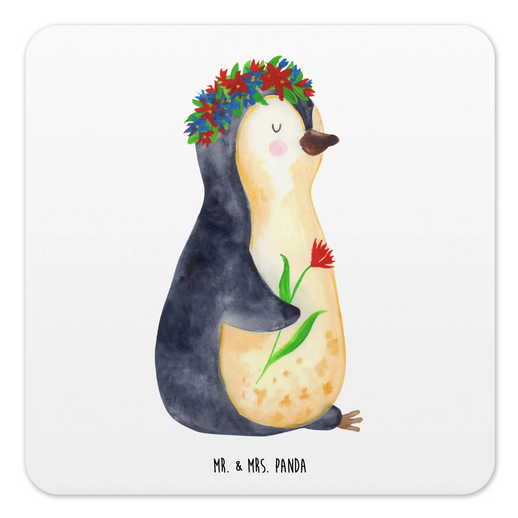 Freude schenkender Pinguin mit Blumenkranz – Mr. & Mrs. Panda Lebenslust