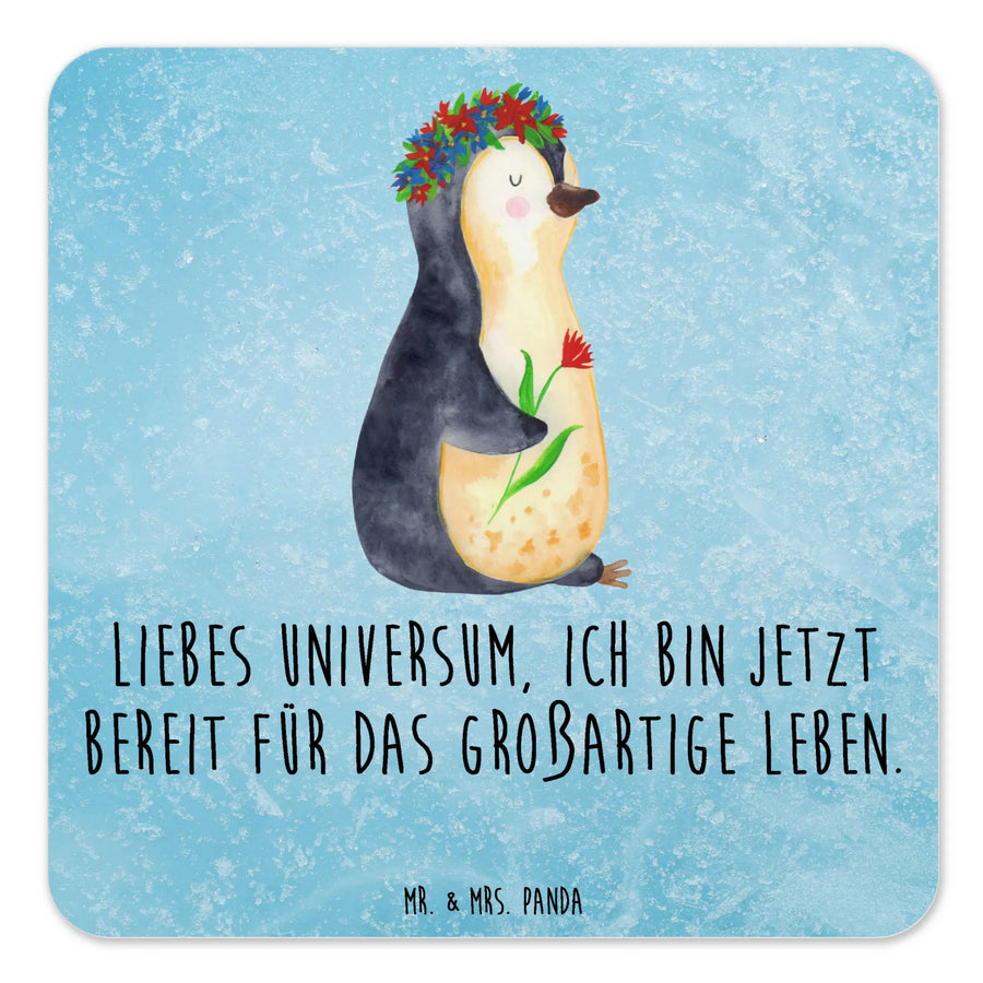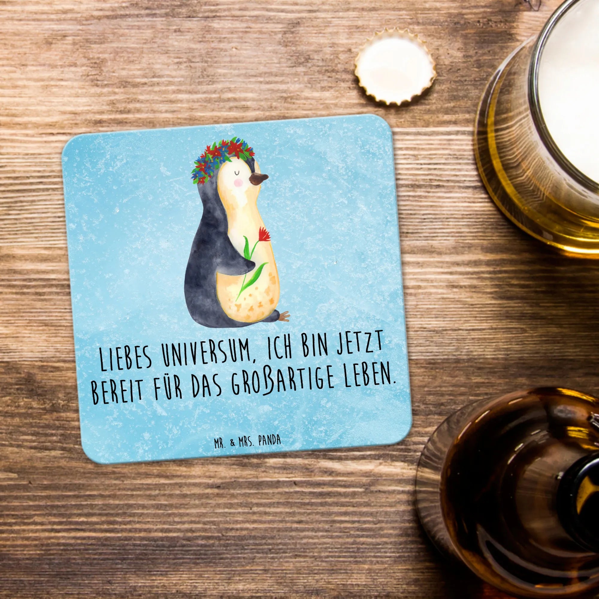 Untersetzer Set Pinguin Blumen - 15er Set - mit Spruch - Eisblau