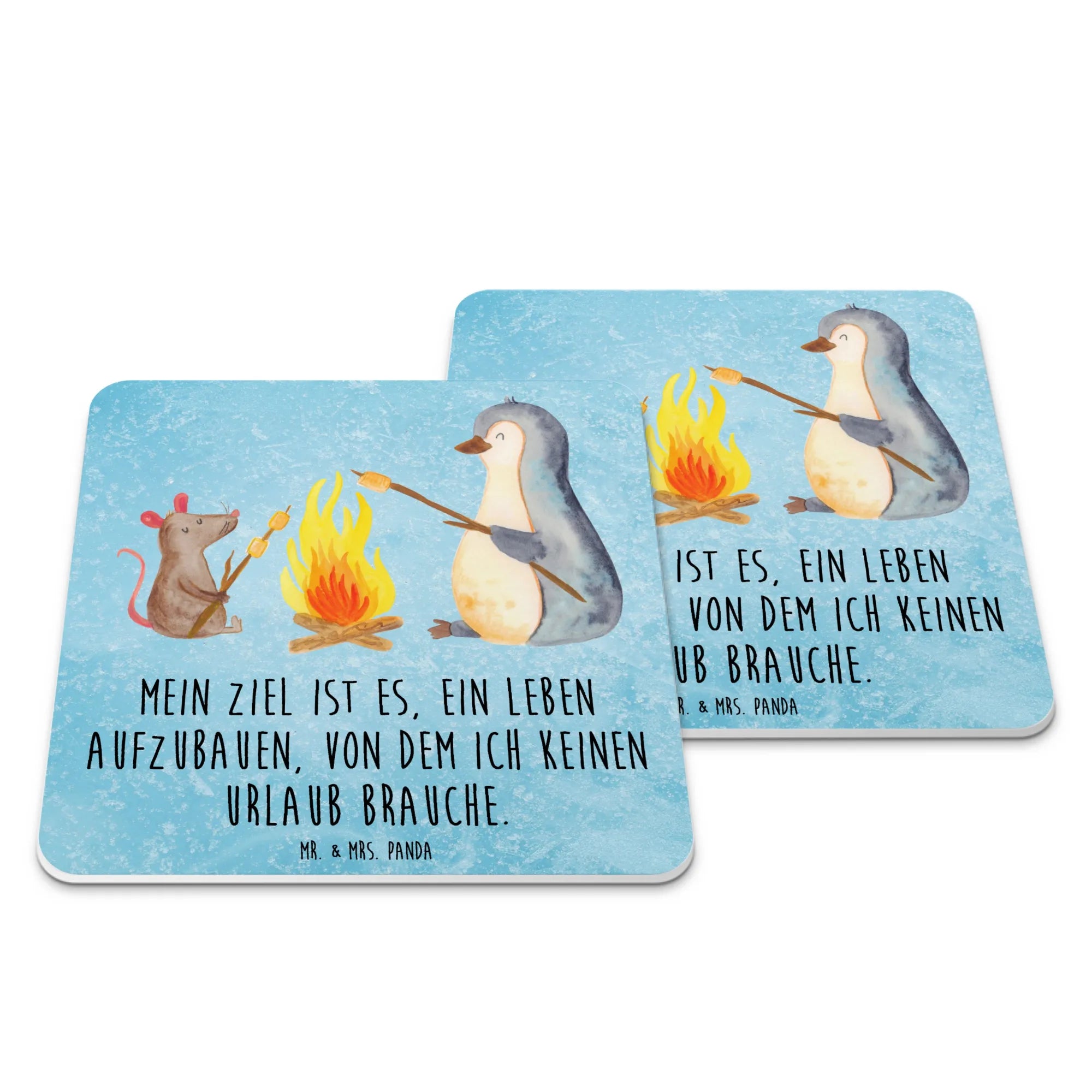 Ein besonderer Abend am Lagerfeuer, an dem sich ein fröhlicher Pinguin und eine kleine Maus die Freude am gemeinsamen Marshmallows-Grillen teilen. Dieses bezaubernde Motiv von Mr. & Mrs. Panda steckt voller Lebensfreude und symbolisiert den Glauben an ein erfülltes Leben. Es ist eine Hommage an die kleinen Momente, die unser Leben so besonders machen. Der Spruch 'Mein Ziel ist es, ein Leben aufzubauen, von dem ich keinen Urlaub brauche' fasst den Traum vieler Menschen zusammen: Ein Leben zu führen, das jeden Tag aufs Neue begeistert und erfüllt. Dieses Motiv lädt uns ein, den Alltag hinter uns zu lassen und uns auf eine Reise zu begeben, auf der Arbeit nicht Last, sondern Teil eines großen, glücklichen Ganzen ist. Es ist eine Motivation, jeden Tag als Chance zu sehen, das Leben in seiner ganzen Pracht zu erleben und Liebe sowie Freude in allem zu finden, was wir tun.