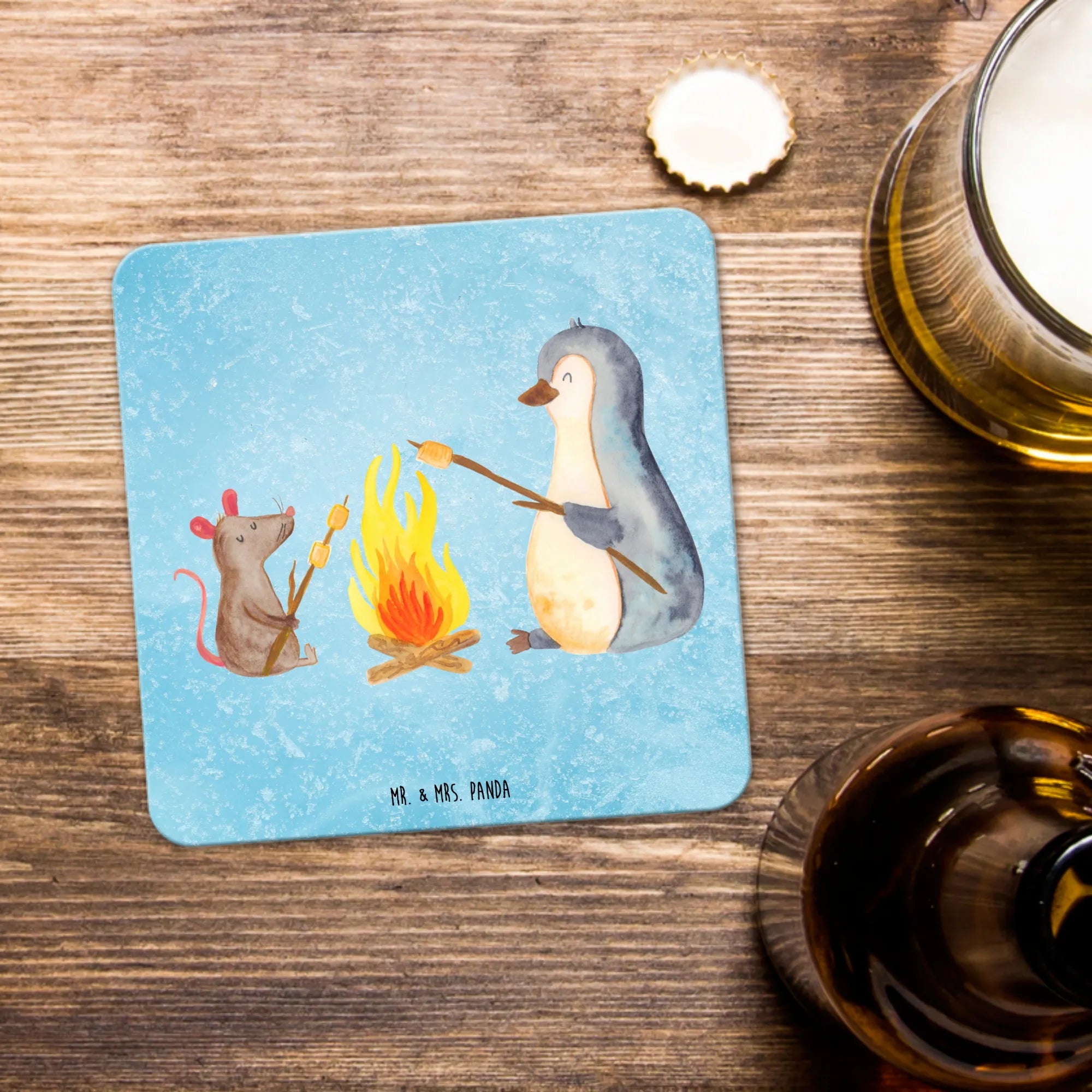 Mr. & Mrs. Panda Motiv 'Pinguin Lagerfeuer' – Ein Symbol für Liebe und Lebenslust, perfekt für Zuhause