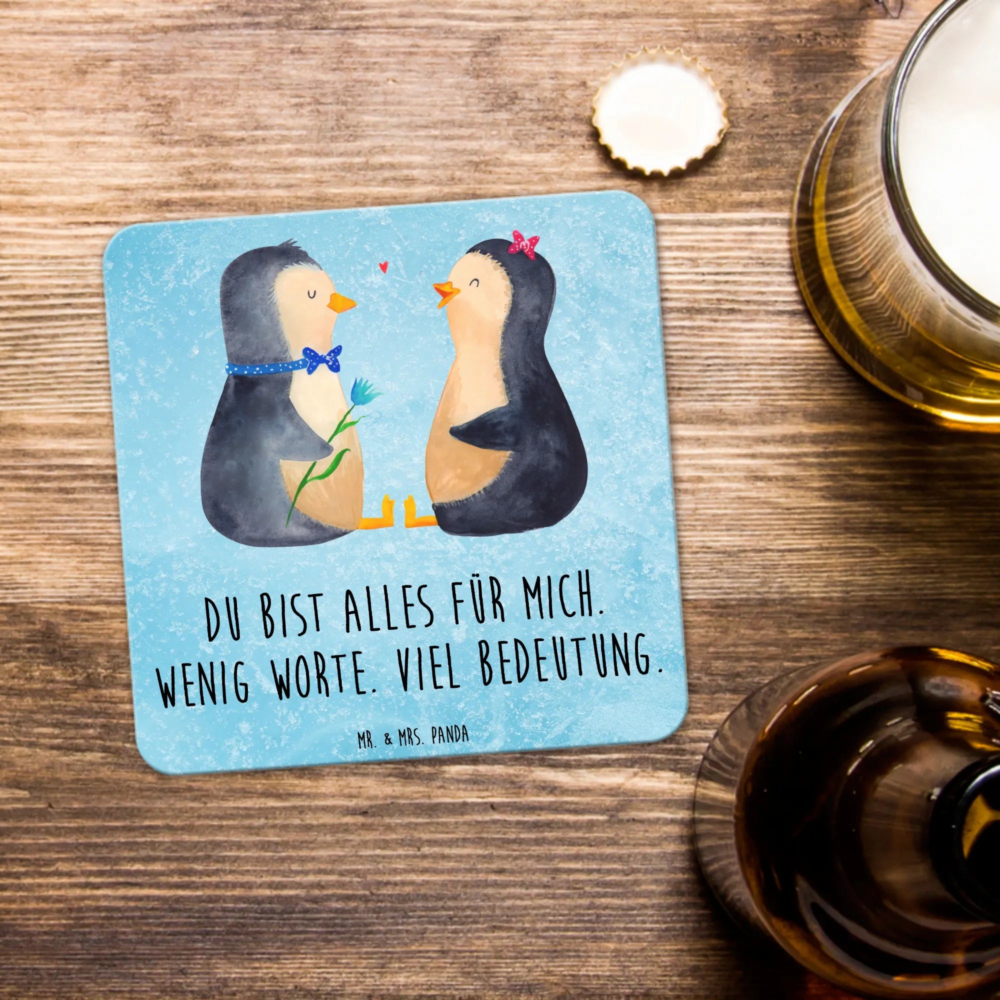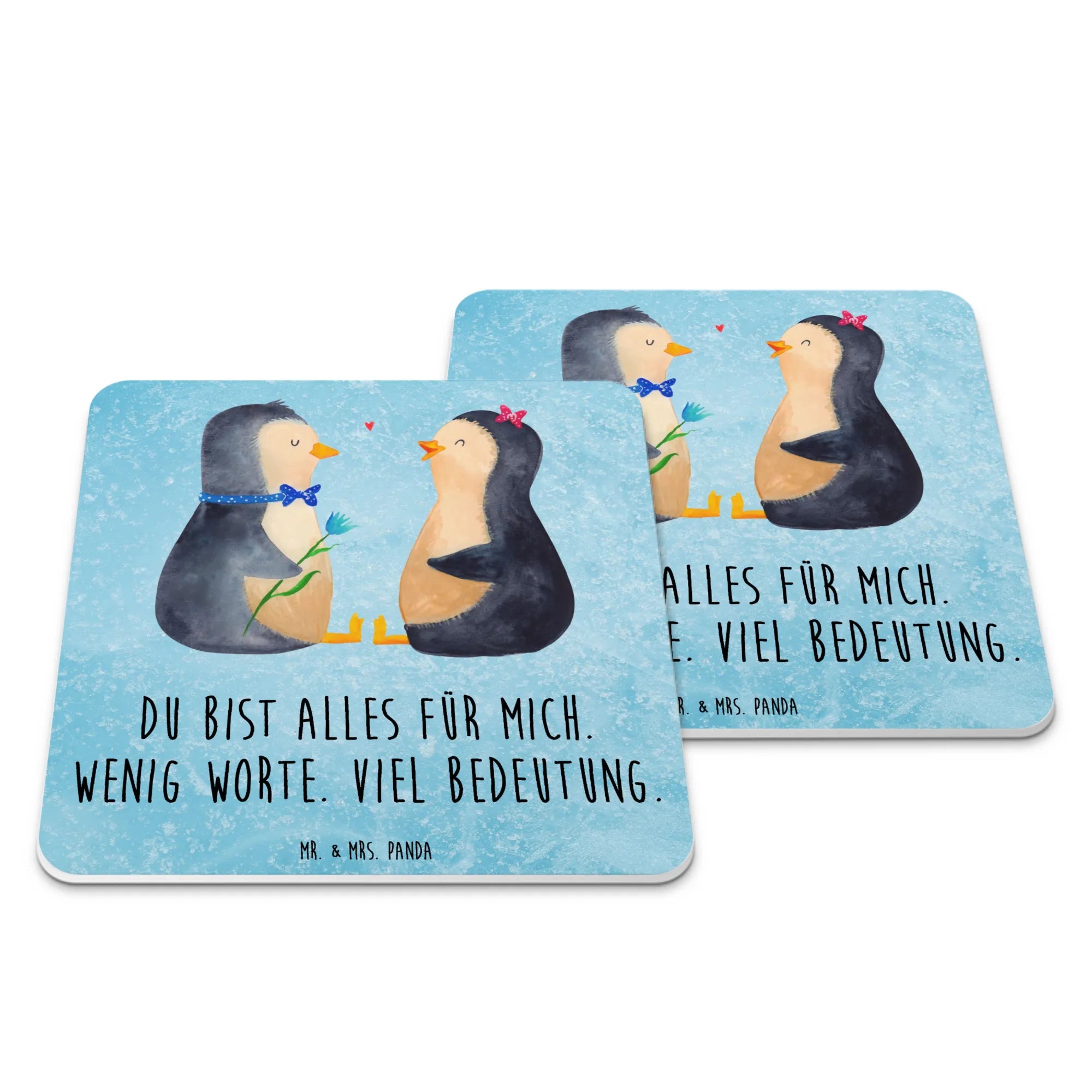 Untersetzer Set Pinguin Pärchen - 15er Set - mit Spruch - Eisblau