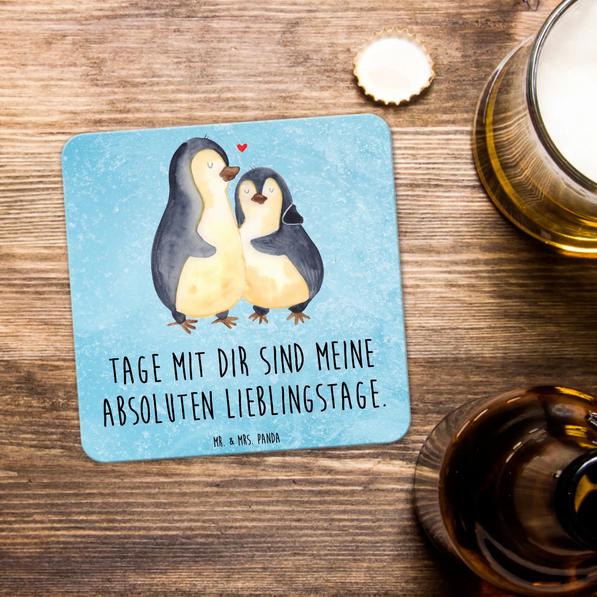 Untersetzer Set Pinguin umarmen - 15er Set - mit Spruch - Eisblau