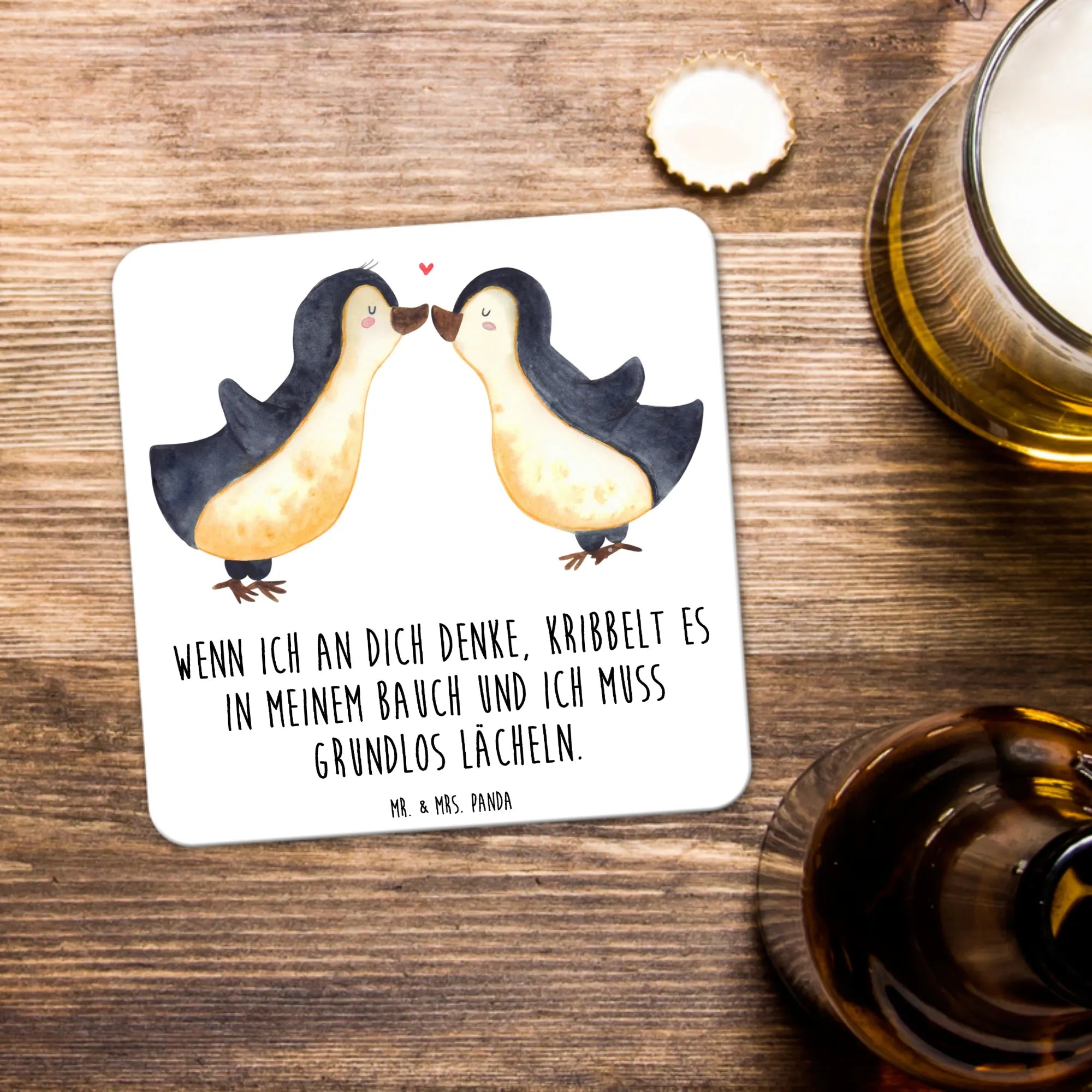 Untersetzer Set Pinguine Kuss - 15er Set - mit Spruch