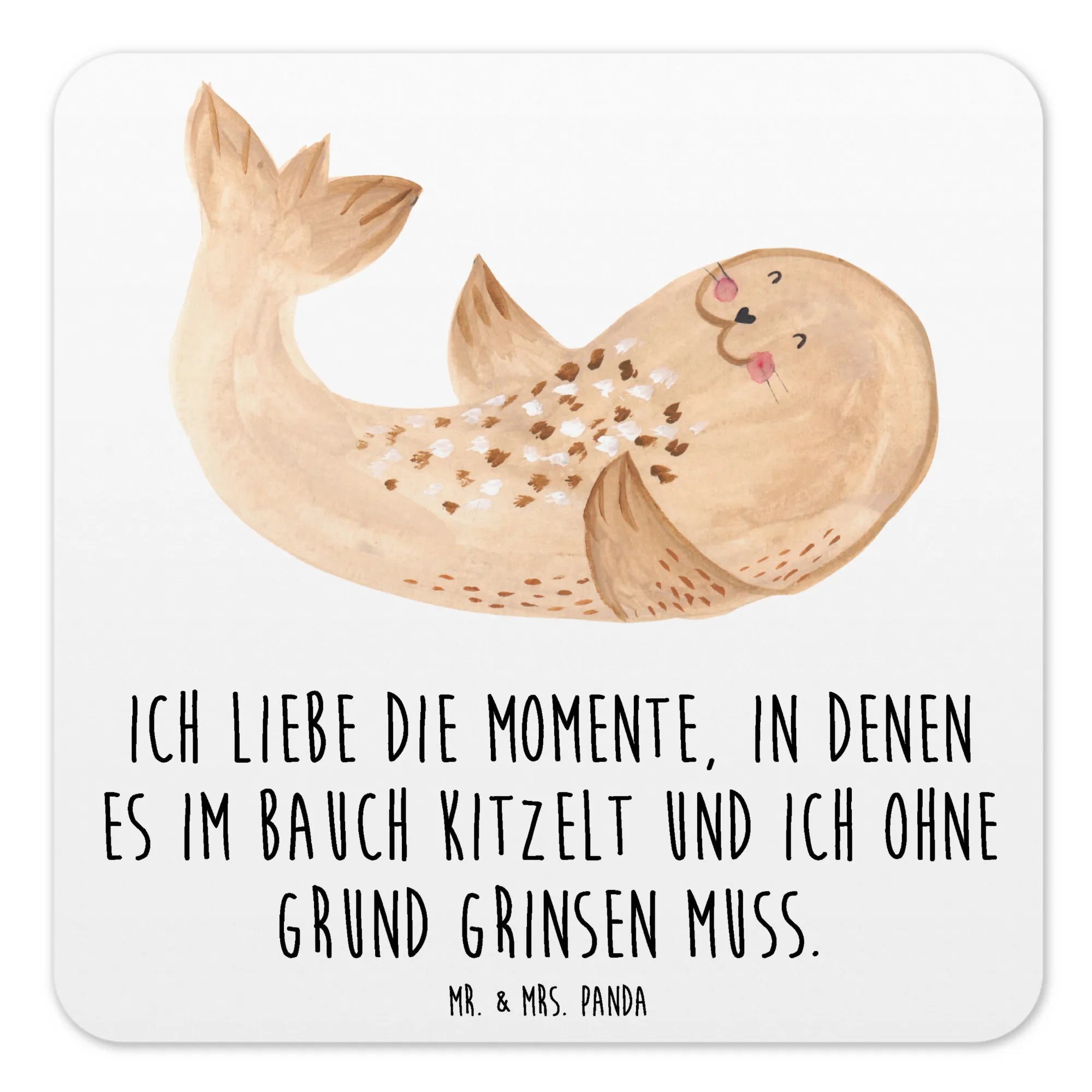 Wer kennt es nicht? Dieses kribbelnde Gefühl der Zufriedenheit und das spontane Lächeln auf den Lippen, wenn man einen Moment echter Freude erlebt. Genau dieses Gefühl haben wir bei Mr. & Mrs. Panda in unserem 'Robbe liegend' Motiv einfangen wollen. Eine Robbe, die sich am Strand sonnt und die Welt um sich herum vergisst, verkörpert die pure Freude und das schöne Gefühl, einfach glücklich zu sein. Sie erinnert uns daran, dass es die kleinen Momente im Leben sind, die unser Herz zum Singen bringen. Der dazugehörige Spruch 'Ich liebe die Momente, in denen es im Bauch kitzelt und ich ohne Grund grinsen muss', ist eine Hommage an diese kleinen Glücksmomente, die oft unerwartet kommen, aber einen bleibenden Eindruck hinterlassen.