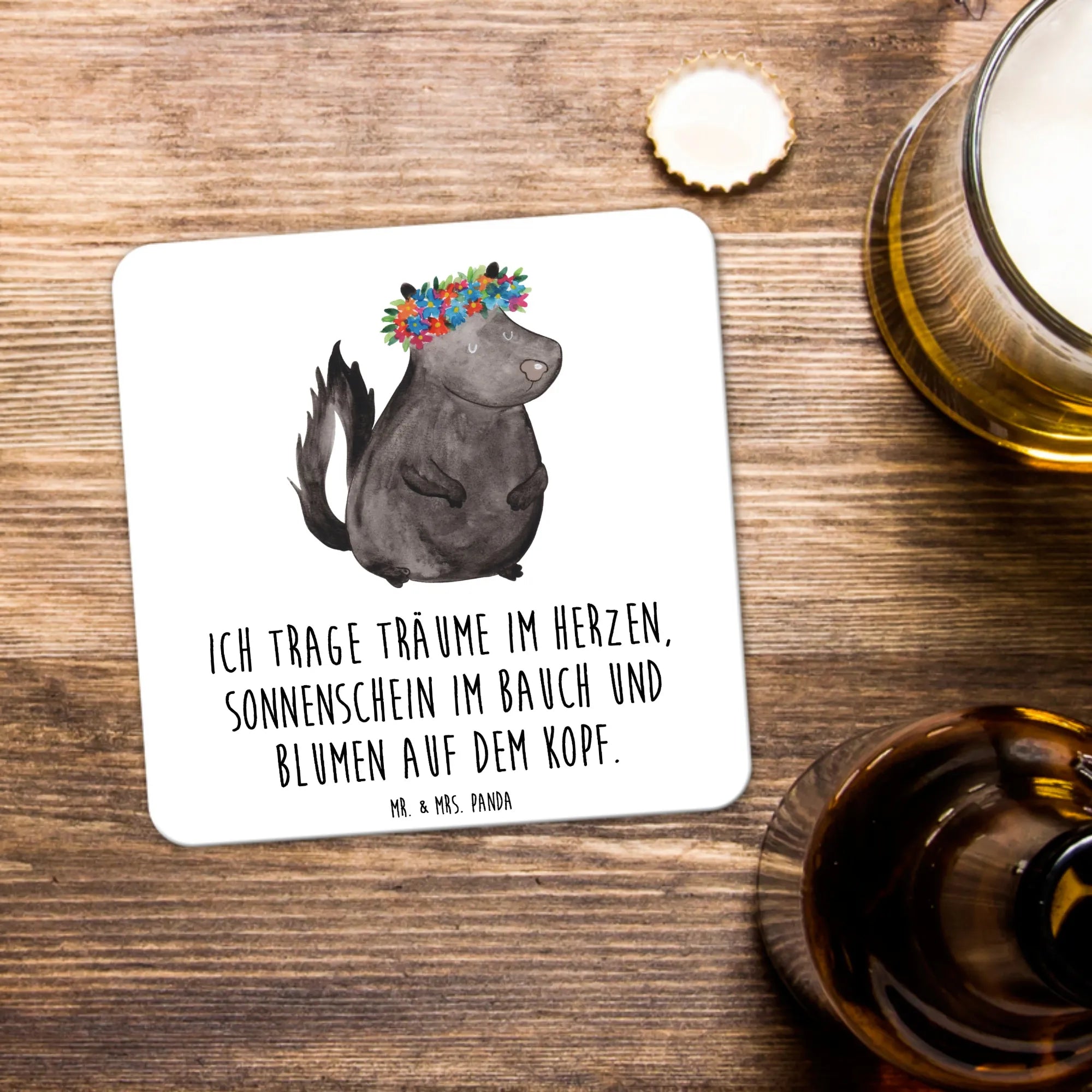 Tauche ein in die wundervolle Welt des Stinktiers, liebevoll eingefangen in der Stinktier-Kollektion von Mr. & Mrs. Panda. Jedes Stück dieser Kollektion, sei es eine Tasse, ein Kissen oder eine Grußkarte, trägt die handsignierte Note von Mrs. Panda und einen Spruch, der das Herz erwärmt. Inspiriert von Herrn Blume, dem geliebten Haustier von Mrs. Panda, vereinen diese Designs Liebe und Erinnerung in jedem Pinselstrich. Herr Blume war mehr als nur ein Stinktier; er war ein Freund, ein Familienmitglied, das seinen festen Platz im Herzen hatte. Durch diese Kollektion möchten wir die Liebe, die wir für ihn empfanden, mit Ihnen teilen. Jedes Produkt ist ein Stück Heimat, das Erinnerungen weckt und neue schafft – ideal für Geschenke oder als Schmuckstück für Ihr eigenes Zuhause.