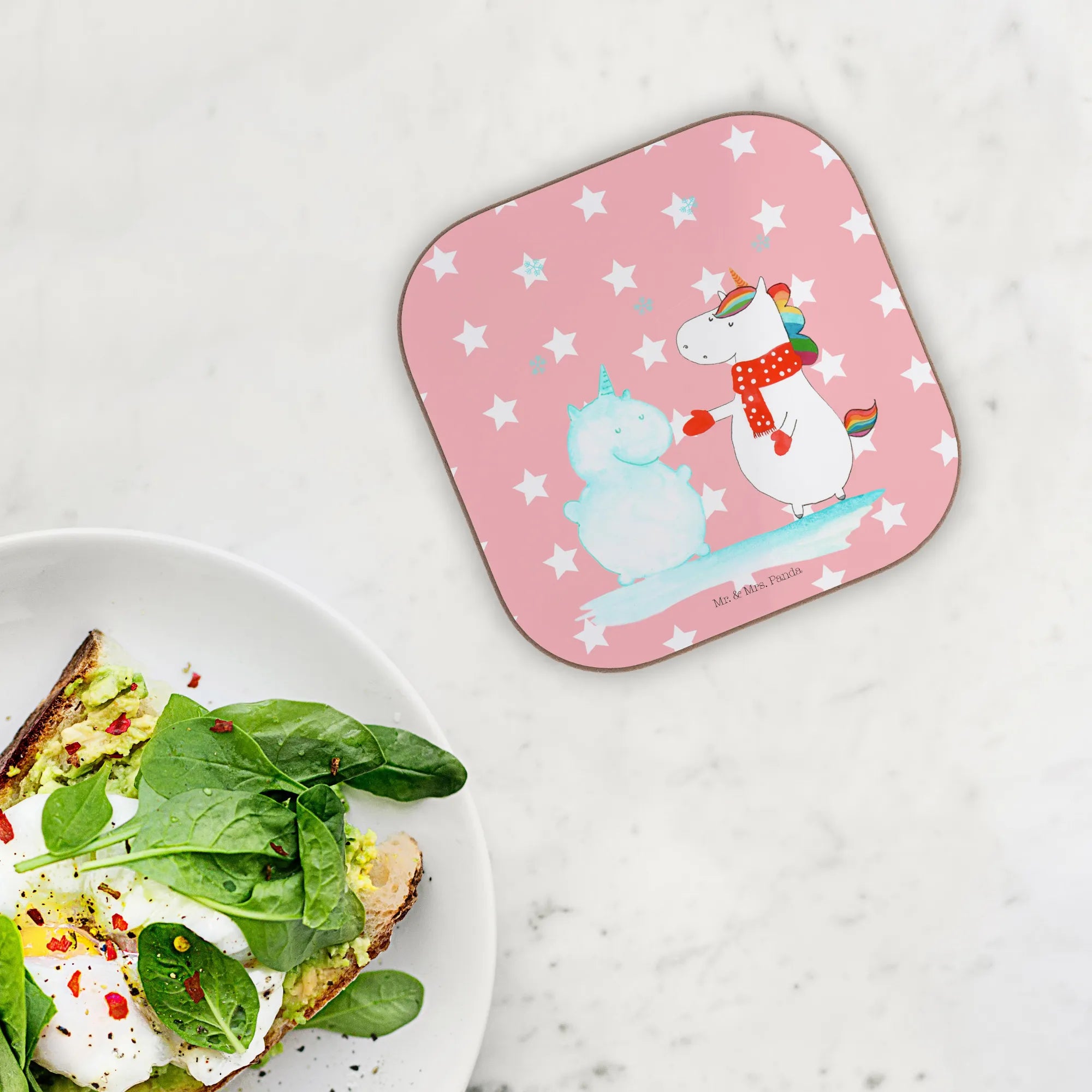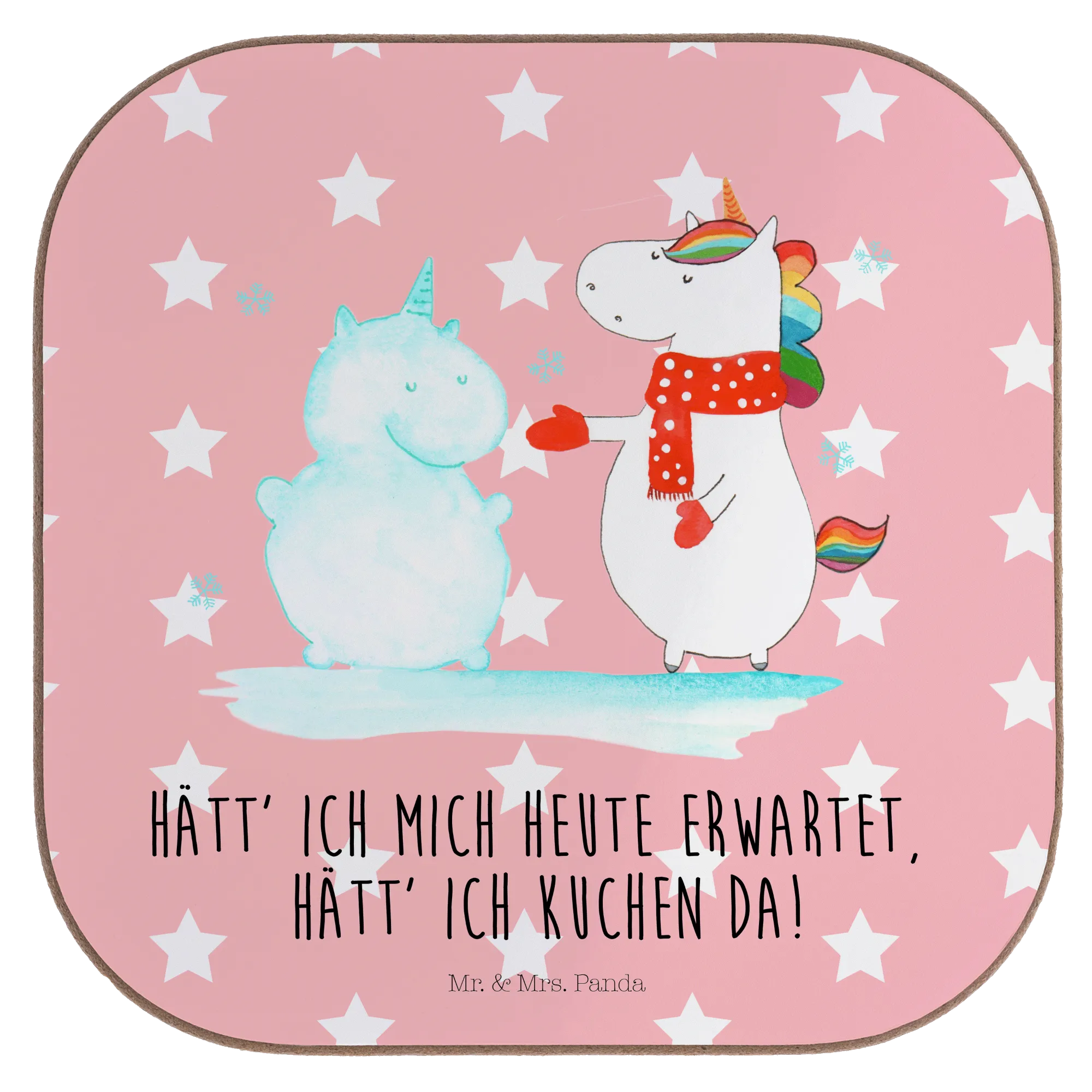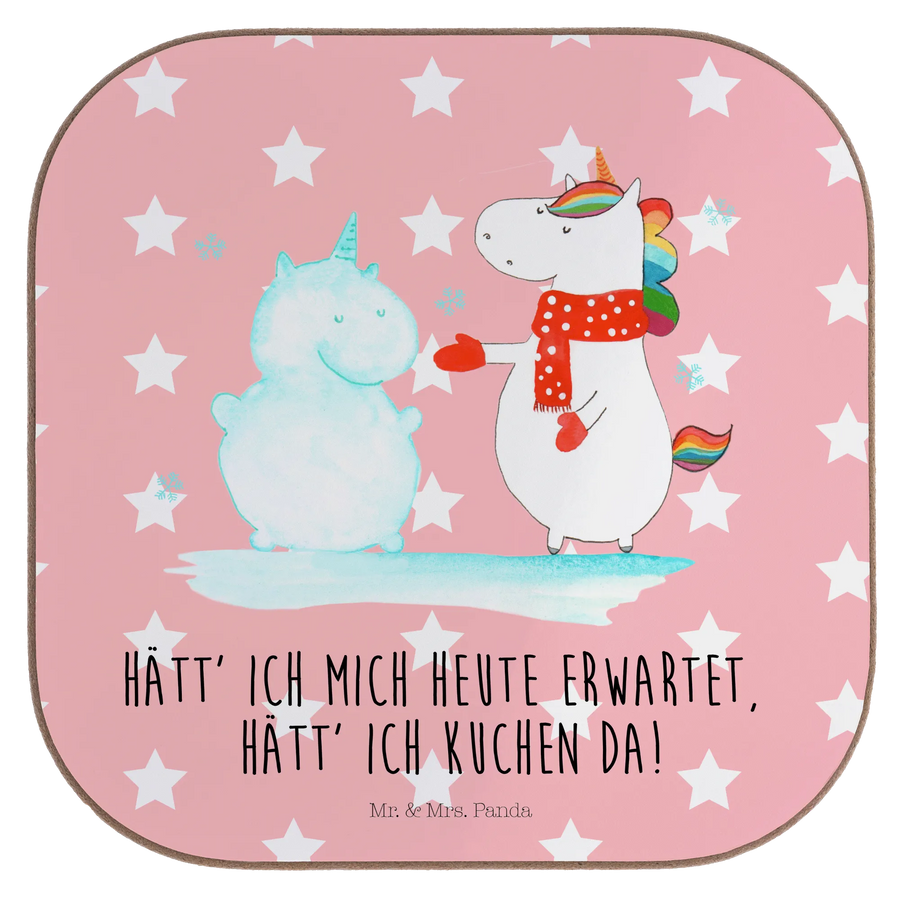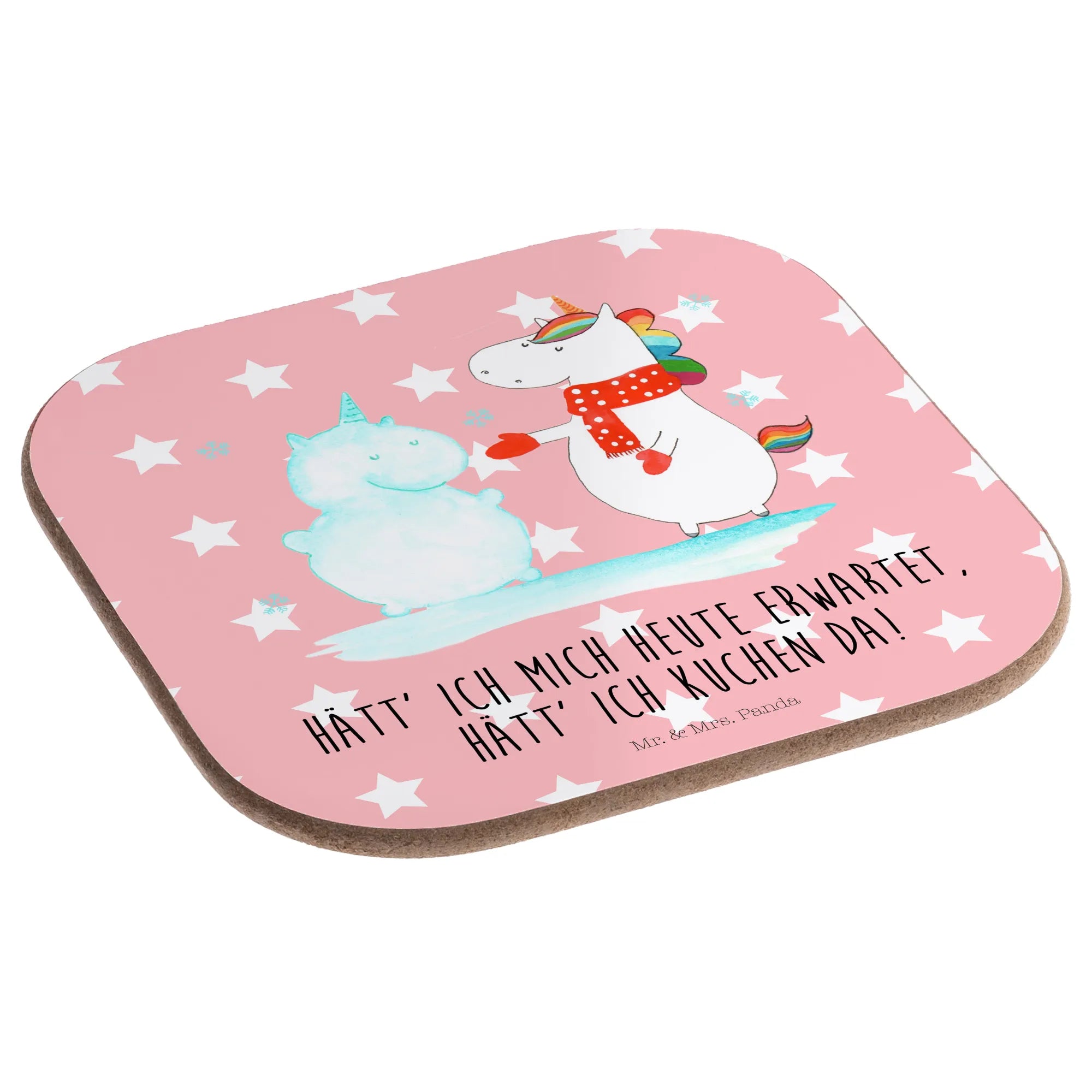 Untersetzer Einhorn Schneemann - mit Spruch - Rot Pastell