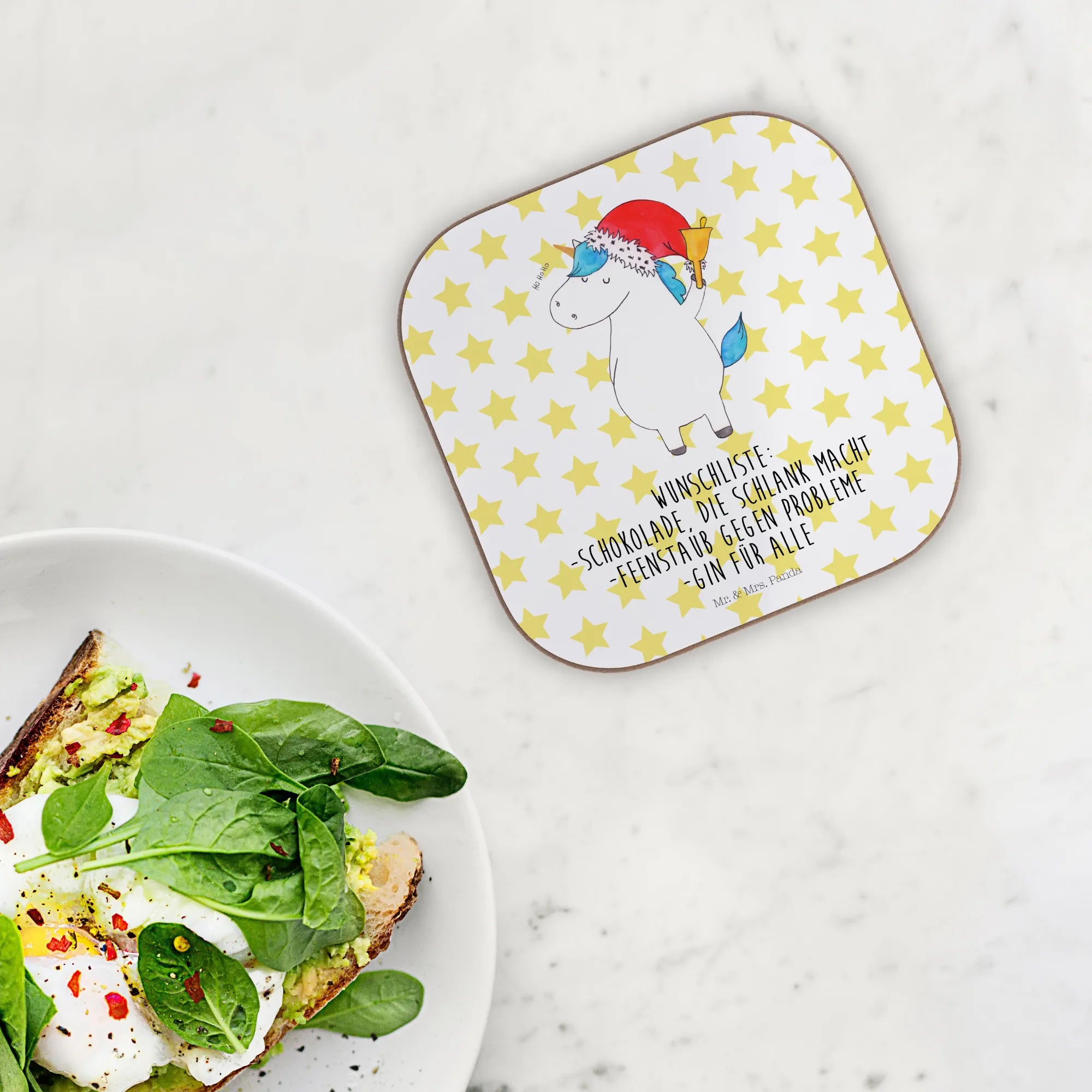 Entdecke den perfekten Untersetzer Einhorn Weihnachtsmann von Mr. & Mrs. Panda! Dieser quadratische Untersetzer ist nicht nur ein wunderschönes Accessoire für deinen Ess- oder Couchtisch, sondern auch ein wahrhaft magisches Geschenk für alle Einhorn-Liebhaber. Mit einem zauberhaften Motiv, das ein süßes Einhorn zeigt, das sich als Weihnachtsmann verkleidet hat und mit einer Glocke bimmelt, zaubert er jedem ein Lächeln ins Gesicht. Der Untersetzer bringt nicht nur Freude, sondern hält deine Oberflächen sauber und geschützt vor Abdrücken, Kratzern und extremen Temperaturen.