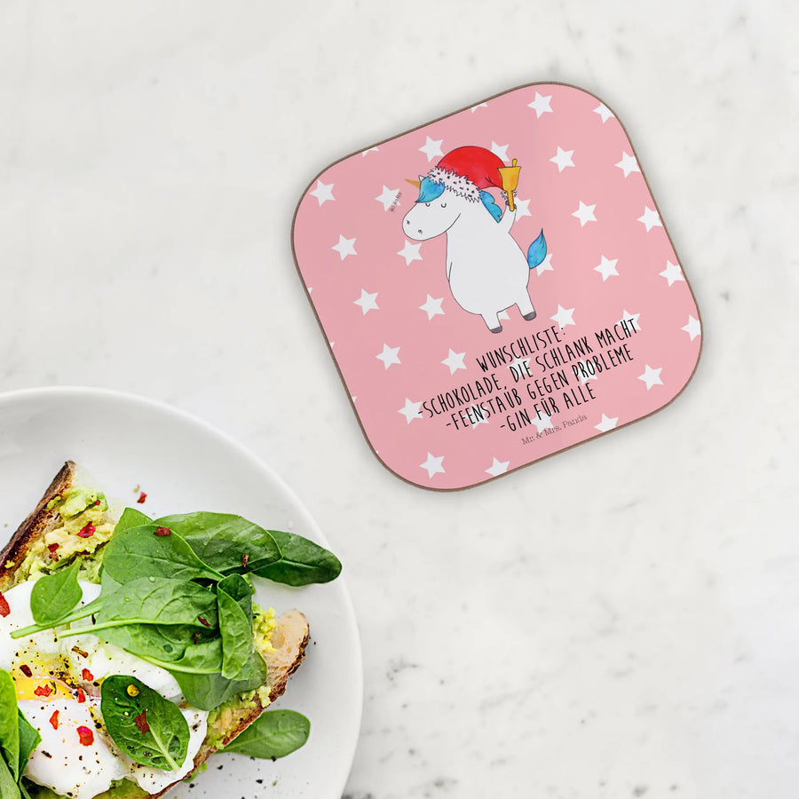 Untersetzer Einhorn Weihnachtsmann - mit Spruch - Rot Pastell