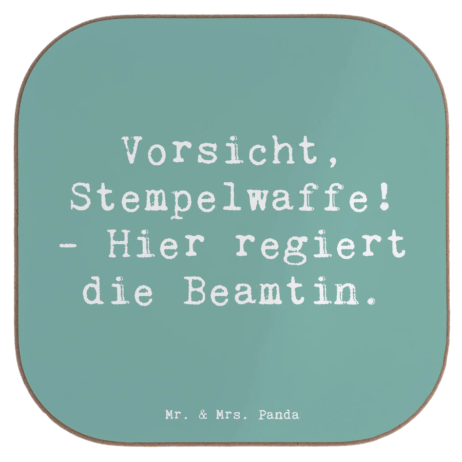 Ein zauberhafter Untersetzer „Beamtin" von Mr. & Mrs. Panda – charmant, praktisch und mit einem Augenzwinkern. Auf Meeresbrise-Hintergrund steht der freche Spruch „Vorsicht, Stempelwaffe! - Hier regiert die Beamtin." und macht den Untersetzer zum perfekten Geschenk für alle, die im öffentlichen Dienst arbeiten oder einfach stolz auf ihren Beruf sind.