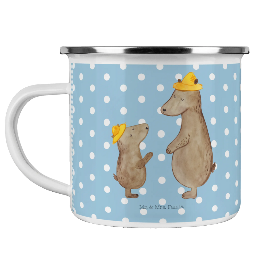 Entdecke die bezaubernde Camping Emaille Tasse mit den fröhlichen Bären mit Hut aus der Familien Kollektion von Mr. & Mrs. Panda. Diese wunderschöne und beständige Tasse ist nicht nur ein treuer Begleiter für all deine Outdoor-Abenteuer, sondern auch ein herzlicher Ausdruck von Liebe und Wertschätzung für deinen Lieblingsmenschen - Papa!