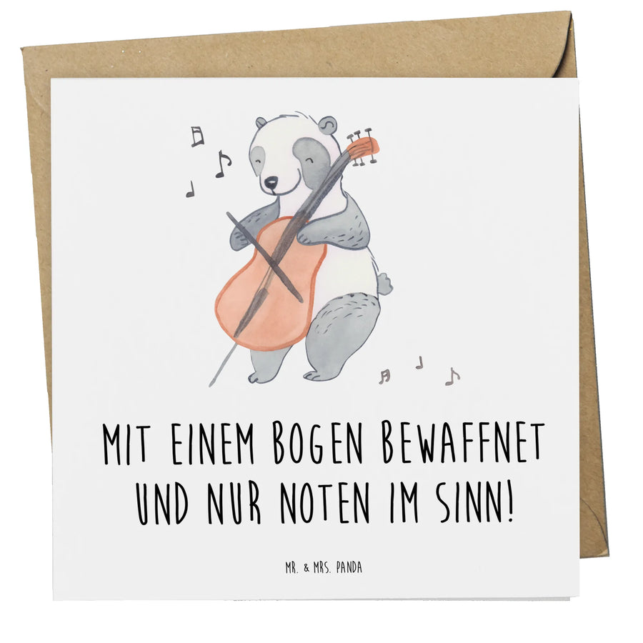 Mit ihrem besonderen Slogan "Mit einem Bogen bewaffnet und nur Noten im Sinn!" bringt sie die Leidenschaft zum Musizieren perfekt zum Ausdruck. Sie eignet sich hervorragend für Hochzeitseinladungen, Geburtstagswünsche oder zum Jubiläum. Das einzigartige Cello-Motiv spricht Emotionen an und lässt Musikherzen höher schlagen.