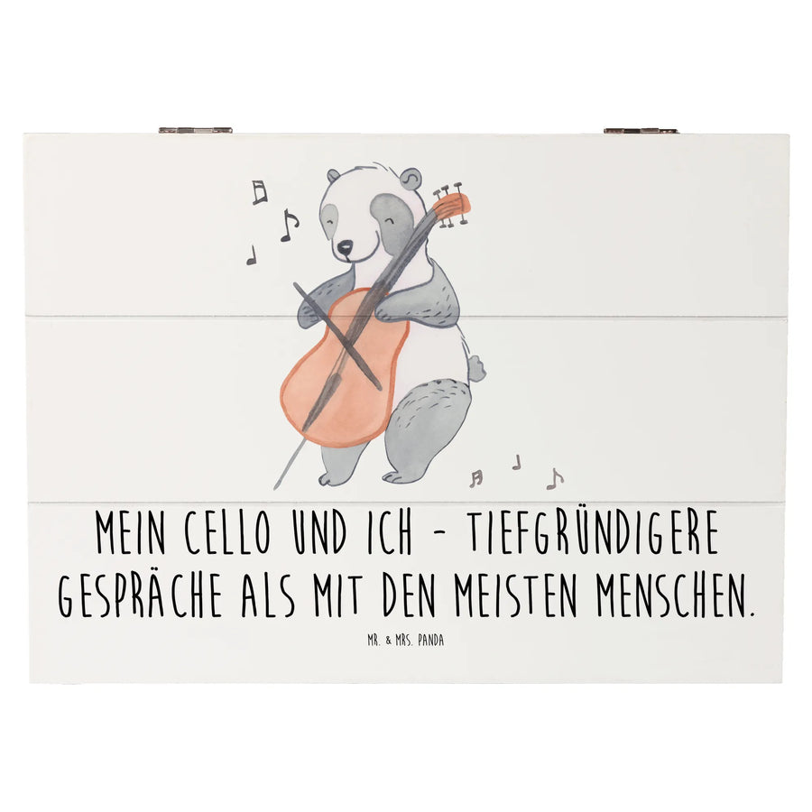 Die wunderschöne Holzkiste von Mr. & Mrs. Panda mit dem Motiv des Violoncellos ist das ideale Geschenk für alle Musikliebhaber und Cellospieler. Diese hübsche Erinnerungskiste wurde aus robuster Premium Hartfaser gefertigt und ist mit einem herzlichen Spruch verziert: "Mein Cello und ich - tiefgründigere Gespräche als mit den meisten Menschen." Der warmen und tiefen Klang des Cellos wird in dieser Kiste verewigt, sodass Du Deine kostbaren Erinnerungen stilvoll aufbewahren kannst.