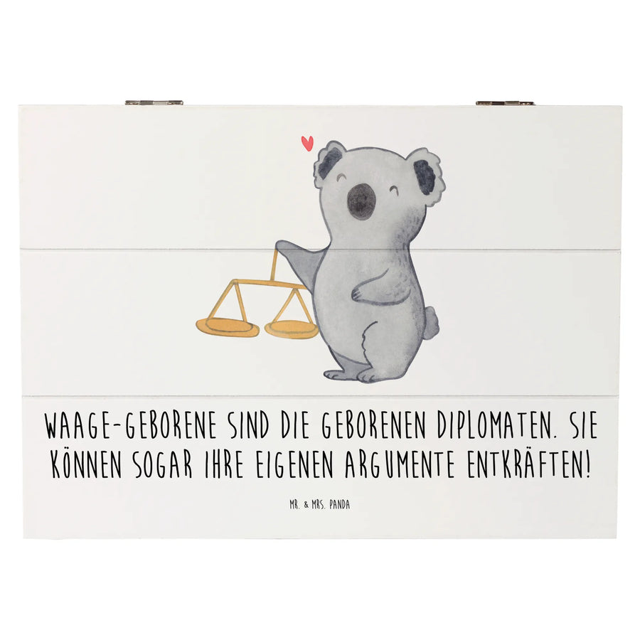 Entdecke die wunderschöne Holzkiste mit dem Motiv der Waage von Mr. & Mrs. Panda – das perfekte Geschenk für alle Waage-Geborenen!