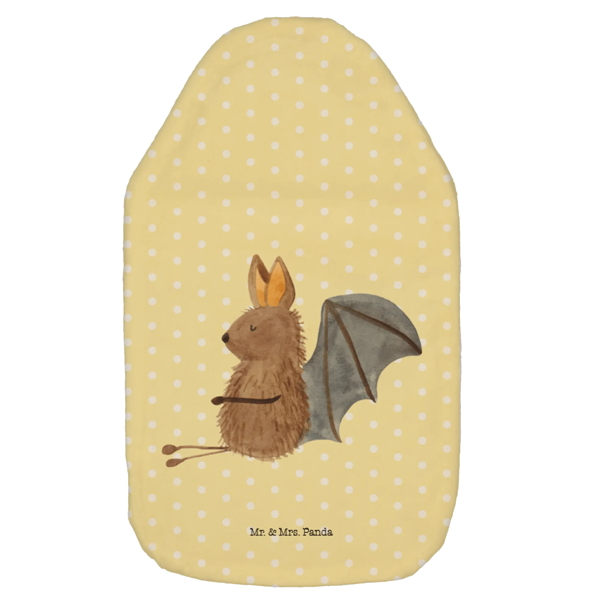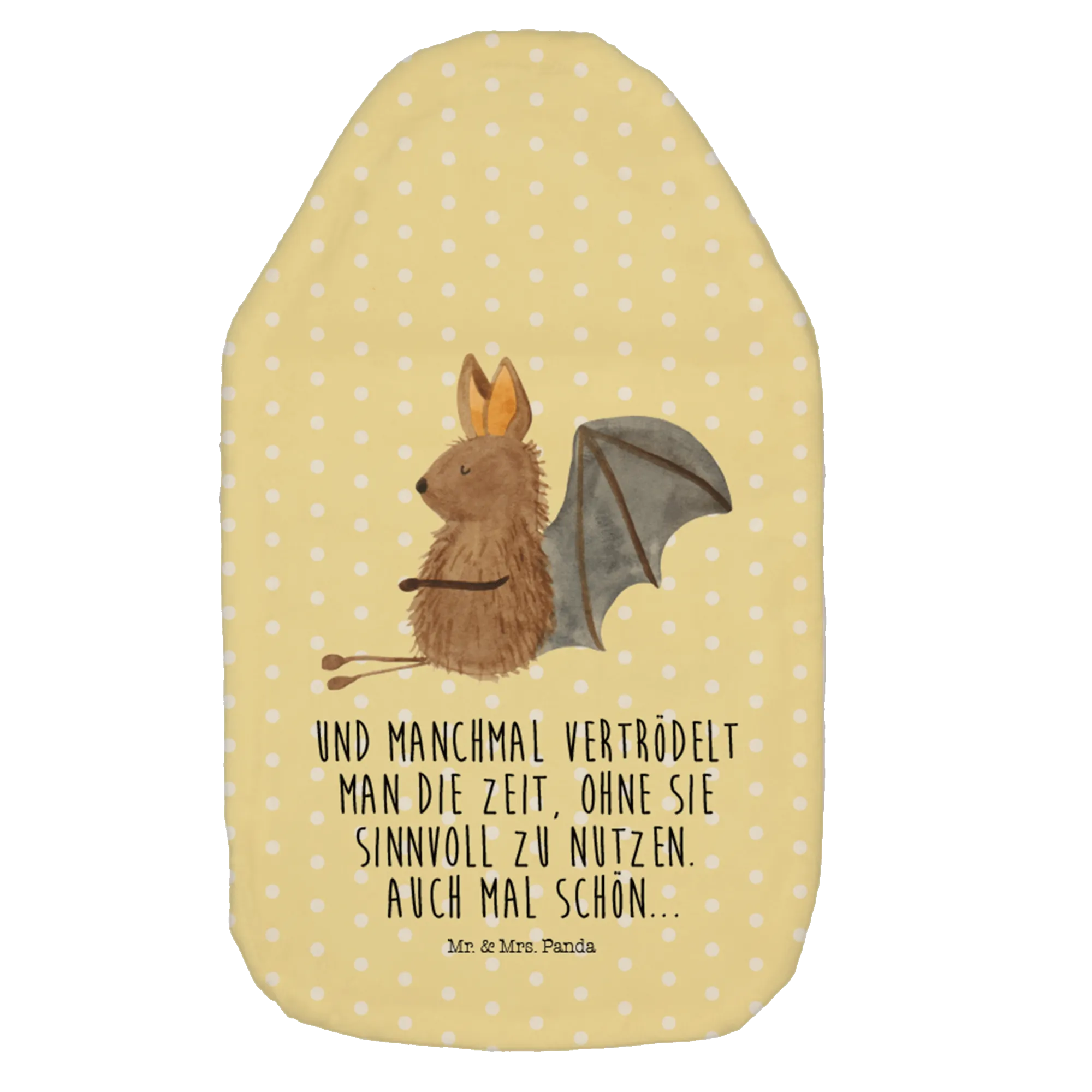 Wärmflasche Fledermaus Sitzen - mit Spruch - Gelb Pastell