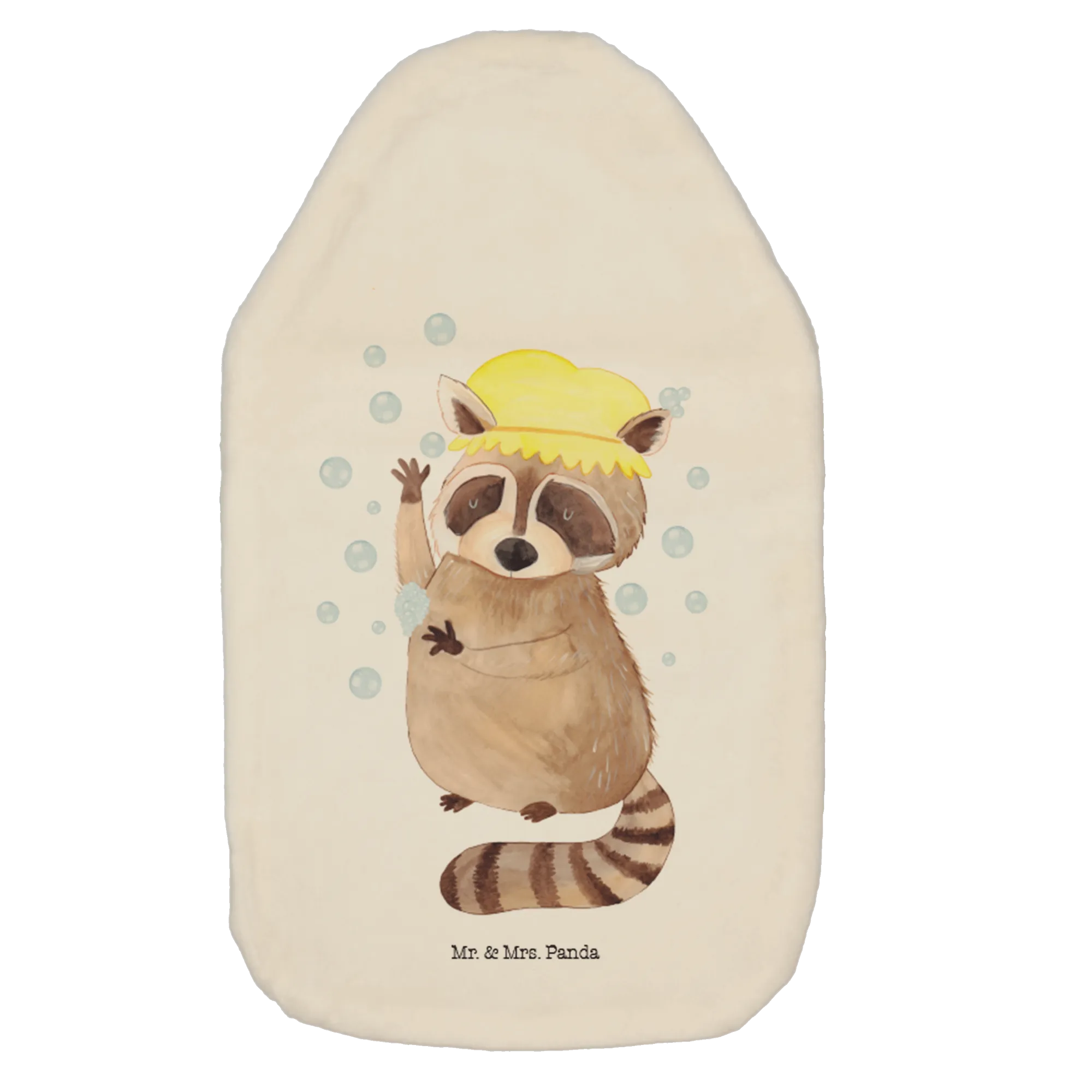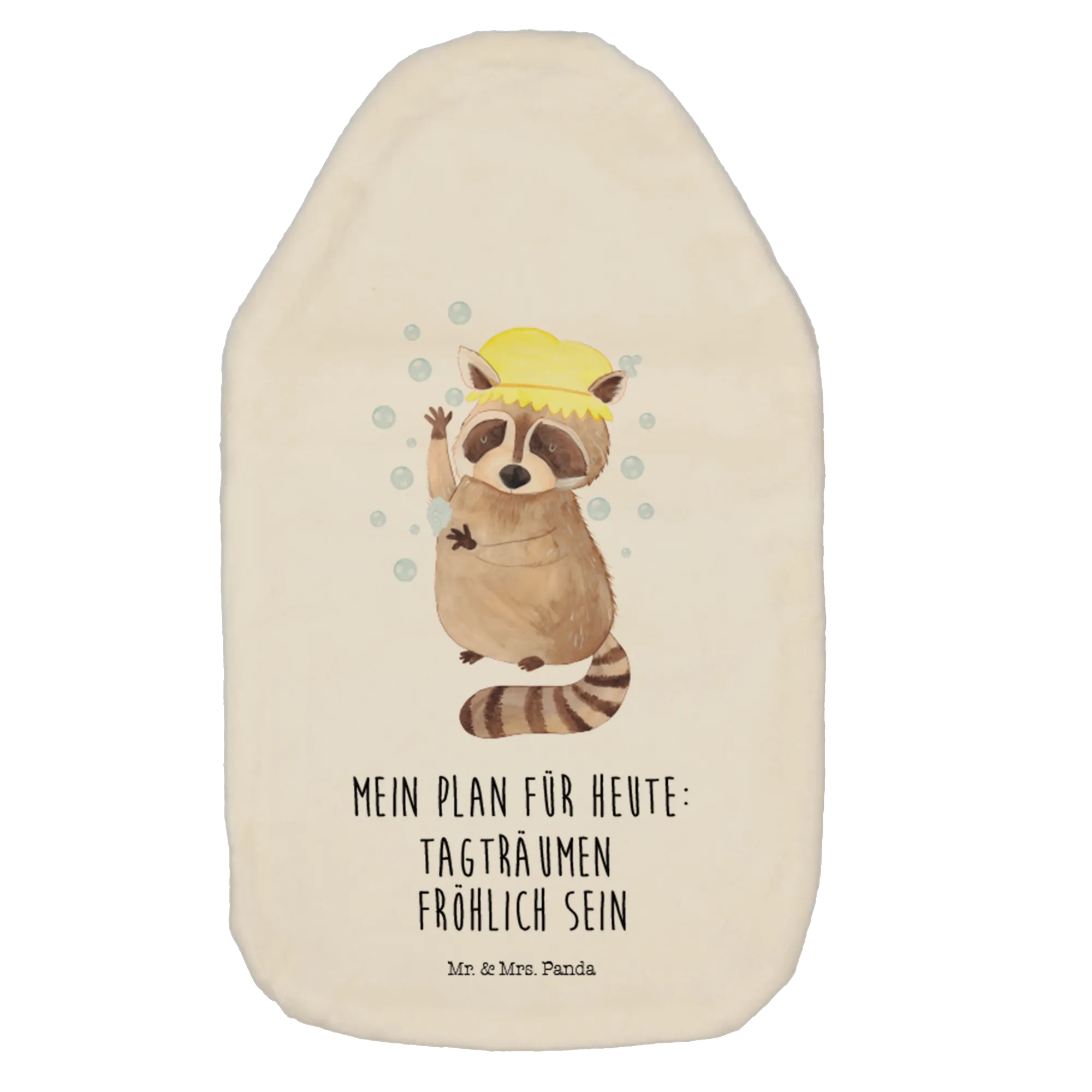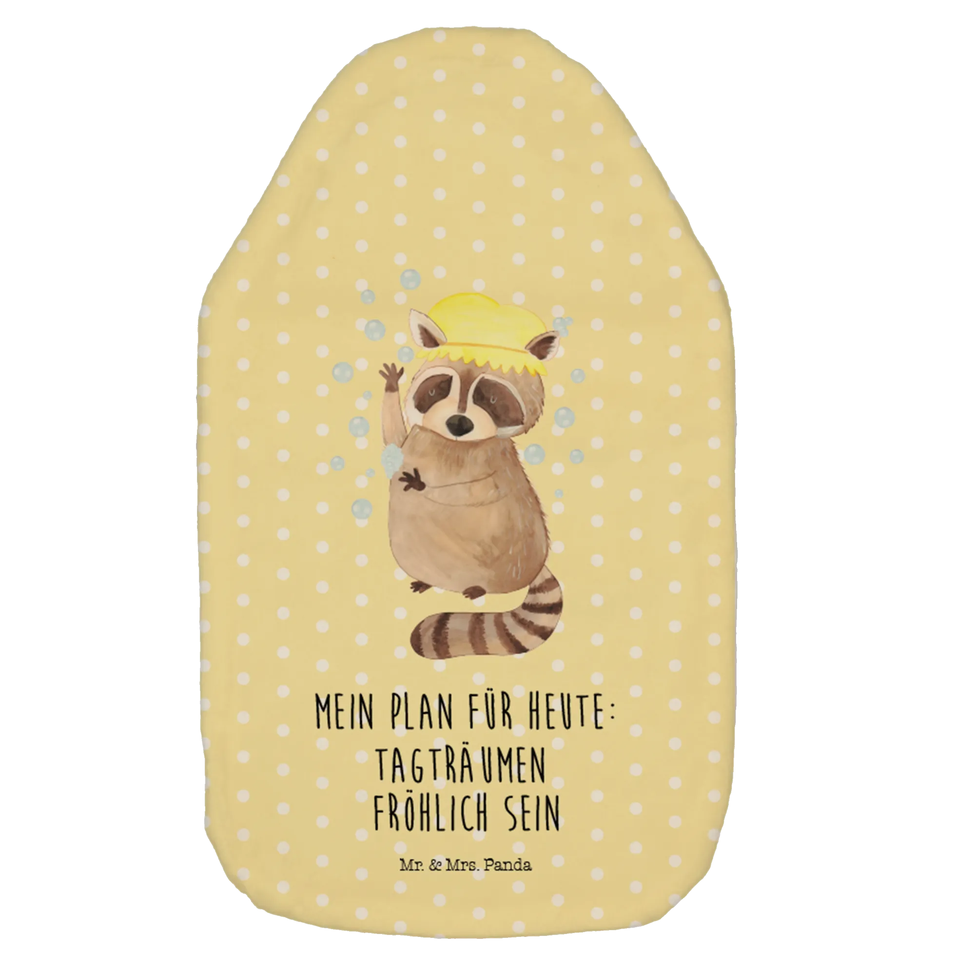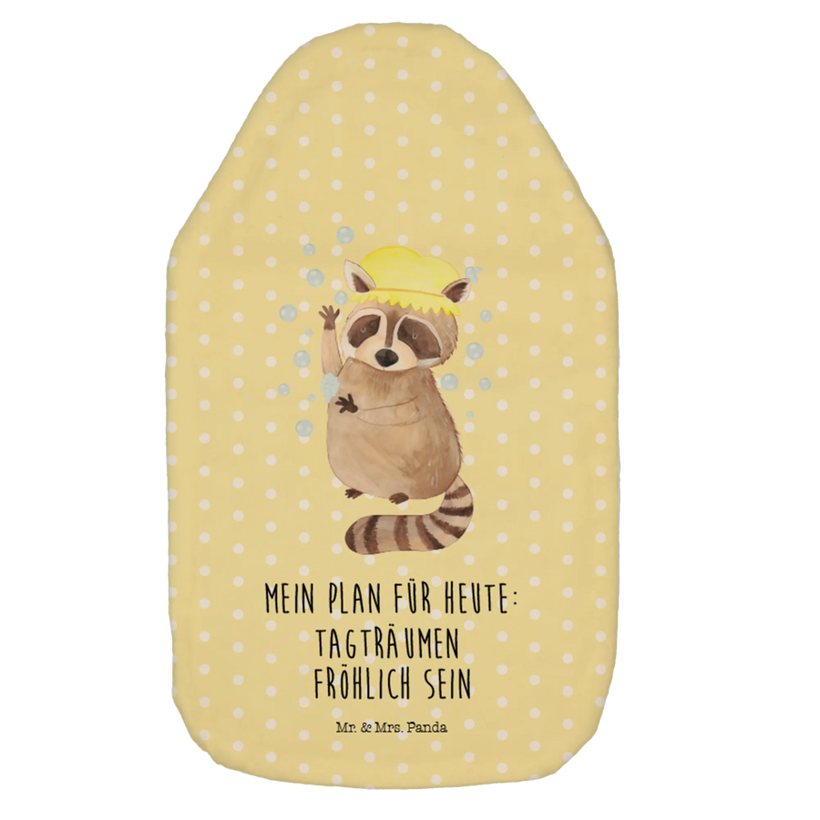 Wärmflasche Waschbär - mit Spruch - Gelb Pastell