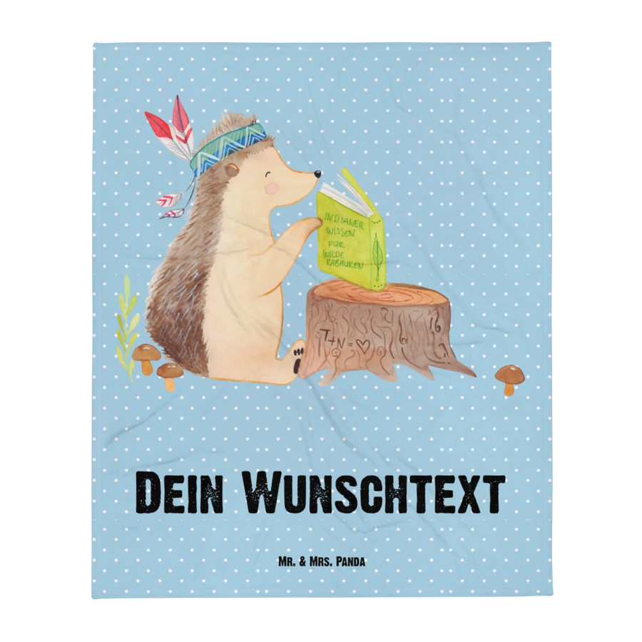 Entdecke die zauberhafte Babydecke mit Namen im süßen Igel Indianer Design aus der Waldtiere Kollektion von Mr. & Mrs. Panda.