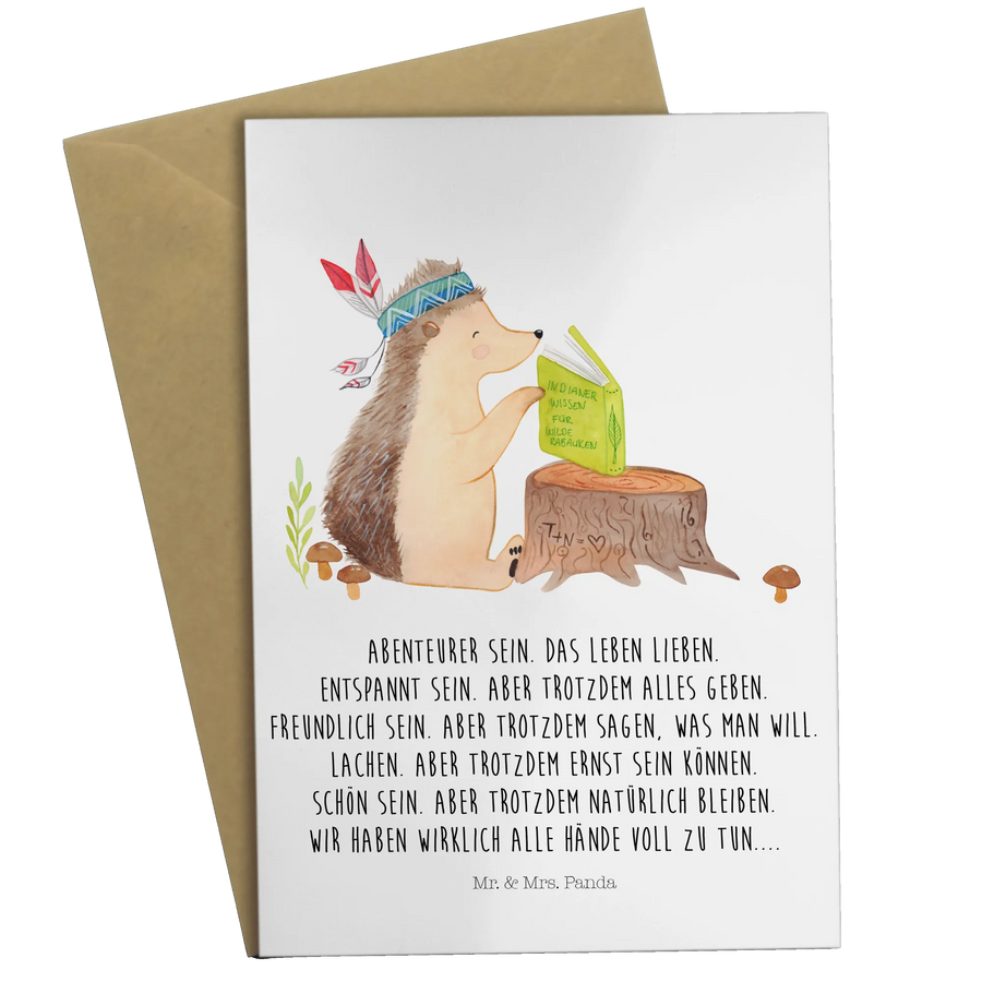 Entdecke die bezaubernde Grußkarte "Igel Indianer" aus unserer liebevollen Waldtiere-Kollektion von Mr. & Mrs. Panda. Diese einzigartige Klappkarte ist nicht nur ein Blickfang, sondern auch der perfekte Begleiter für Deine individuellen Grüße oder Glückwünsche.