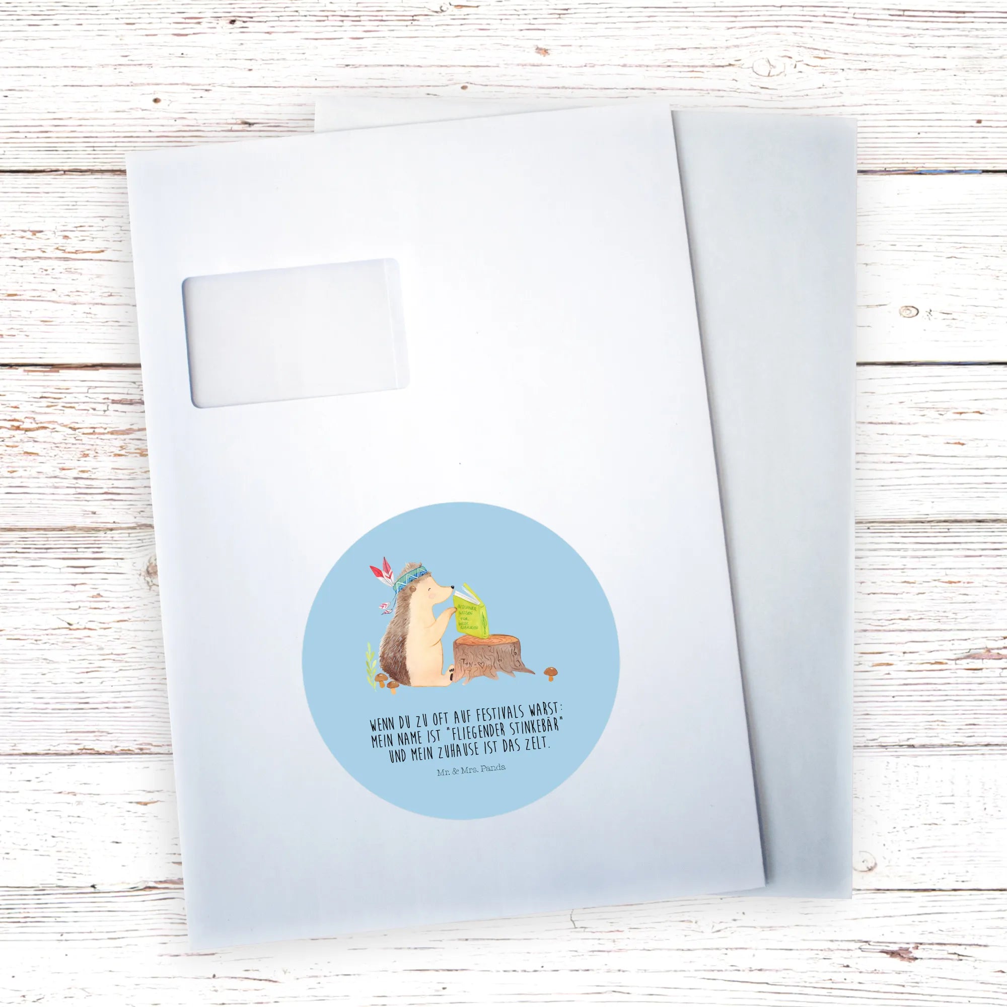 Mr. & Mrs. Panda Igel Indianer – Abenteuer-Motiv mit lesendem Igel auf Baumstumpf