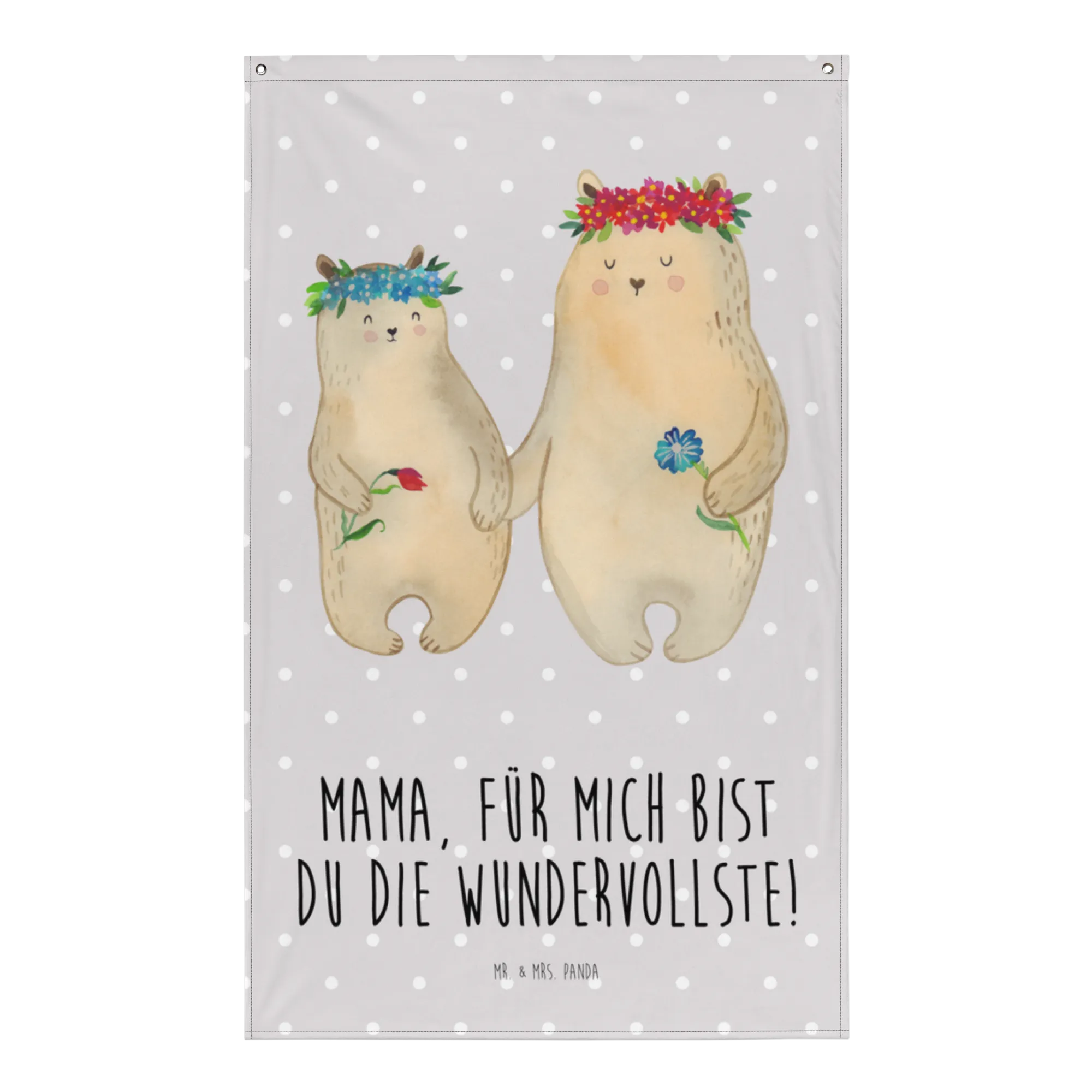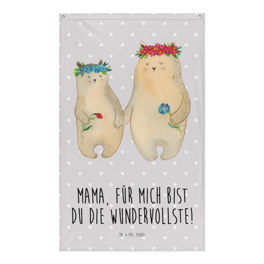 Wandteppich Bären mit Blumenkranz - mit Spruch - Grau Pastell