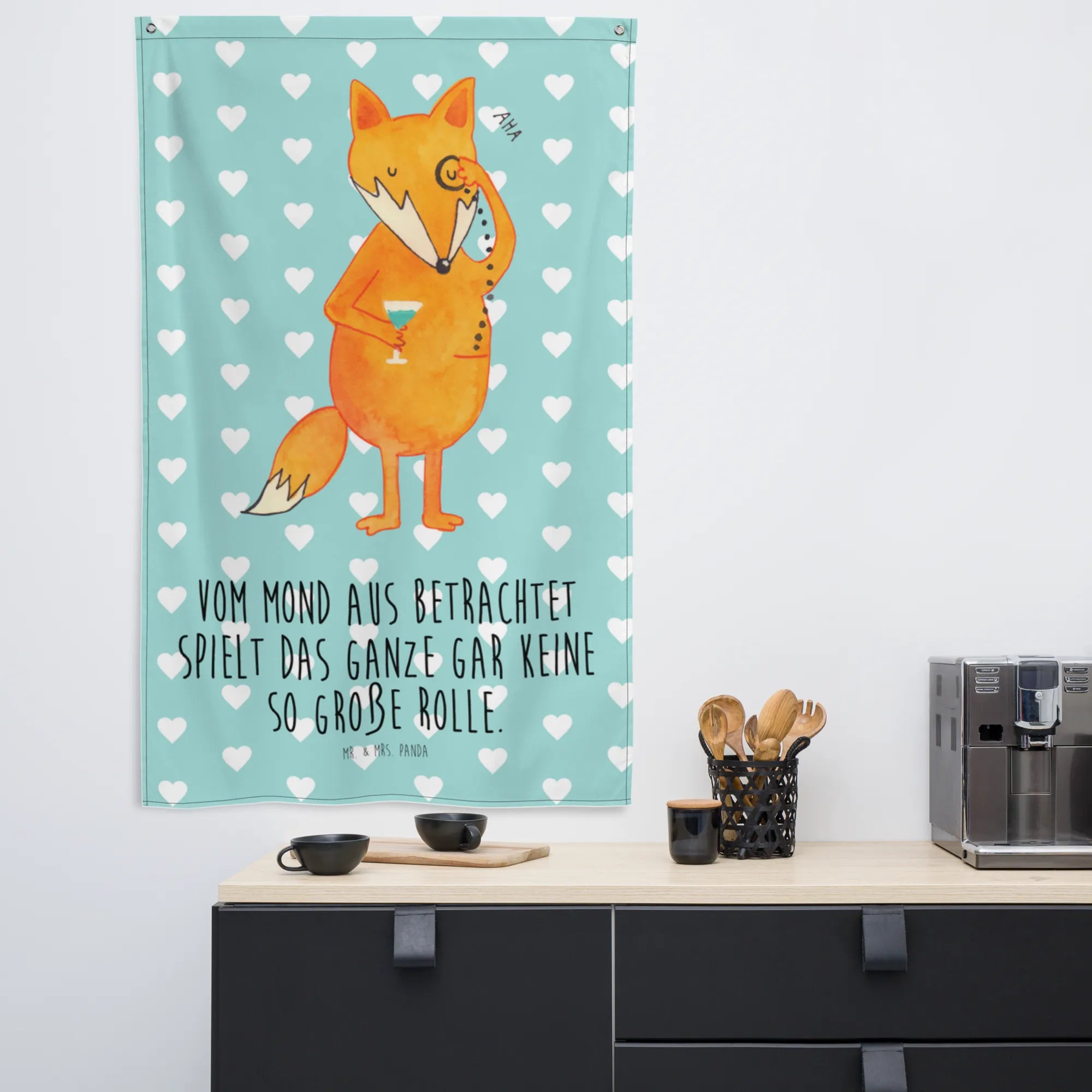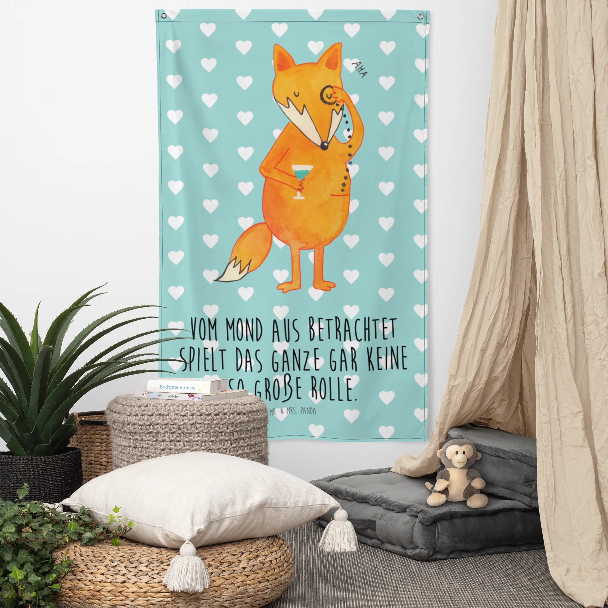 Willkommen in der Welt von Mr. & Mrs. Panda: Der Wandteppich „Fuchs Lord“ ist ein liebevoll gestalteter Wandbehang, der Charme und Stil in dein Zuhause bringt. Der stattliche Fuchs mit Monokel verbindet Niedlichkeit und elegantem Charisma und wird schnell zum Blickfang in Wohnzimmer, Gästezimmer oder Kinderzimmer.