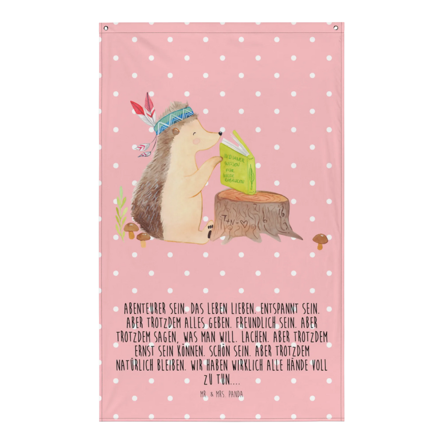 Wandteppich Igel Indianer - mit Spruch - Rot Pastell