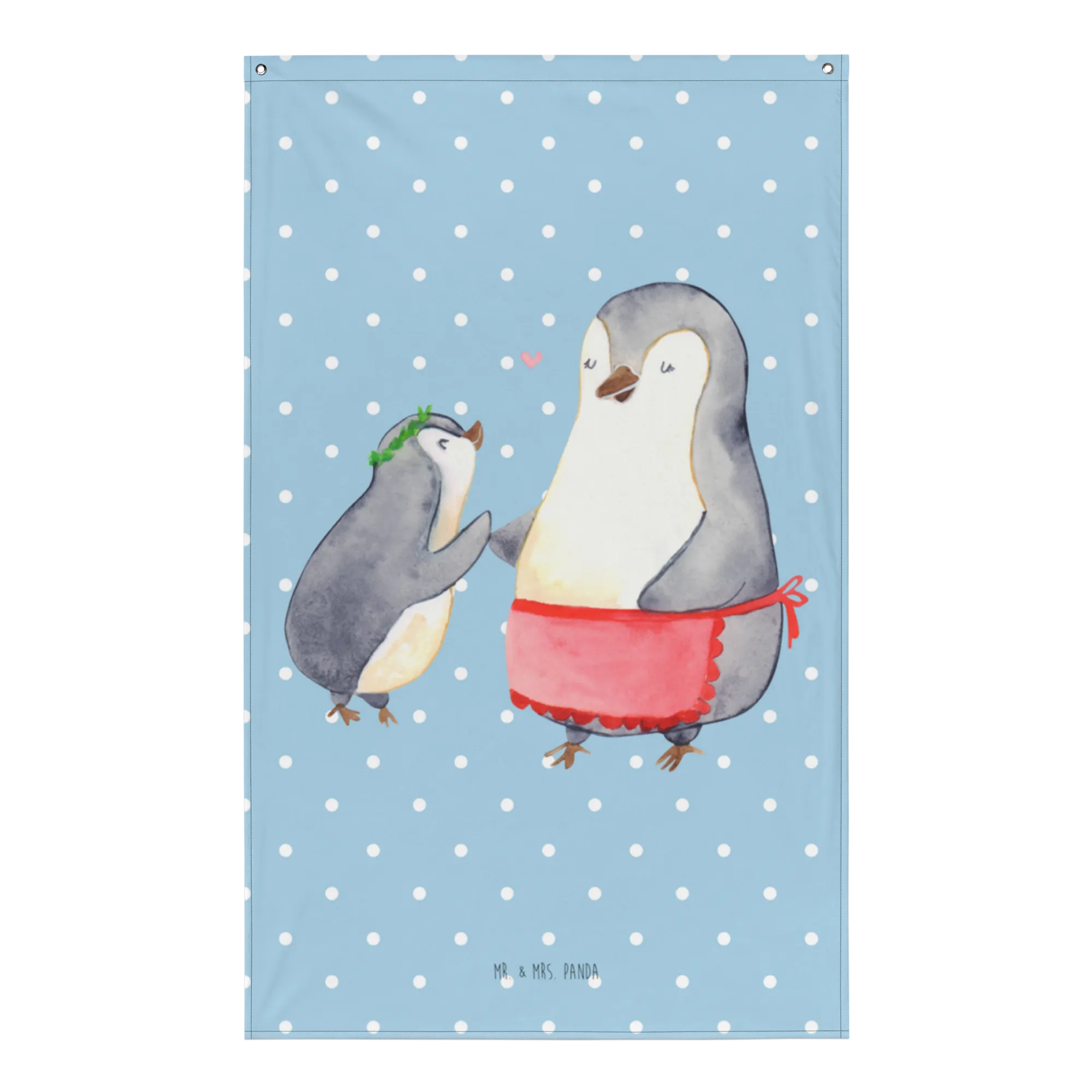 Wandteppich Pinguin mit Kind - mit Spruch - Grau Pastell