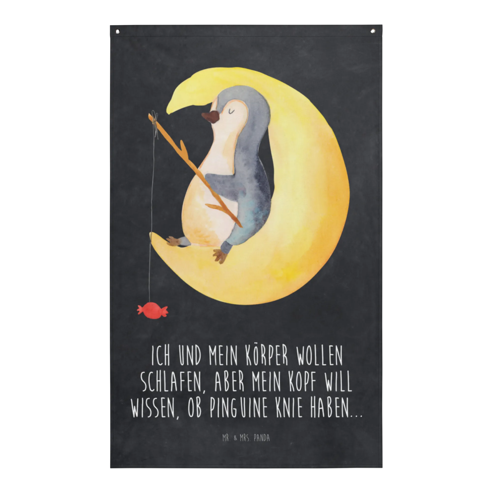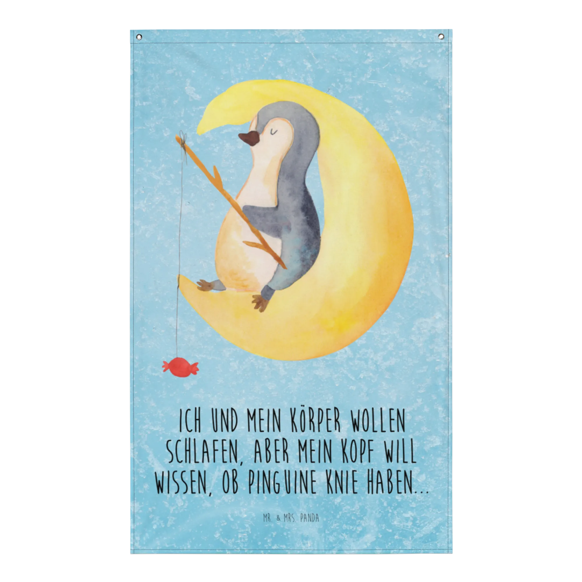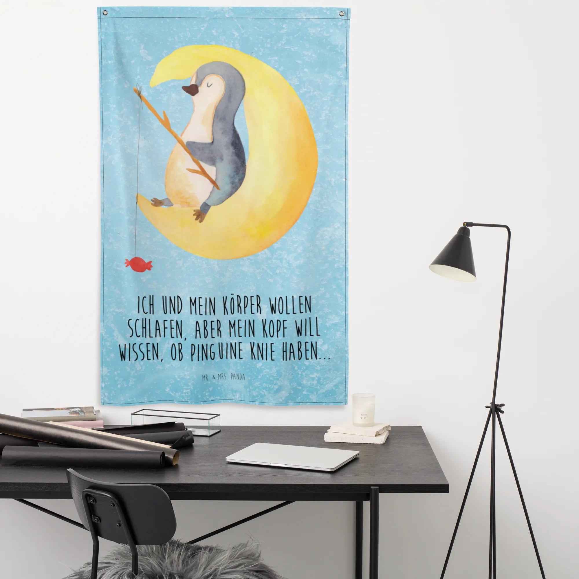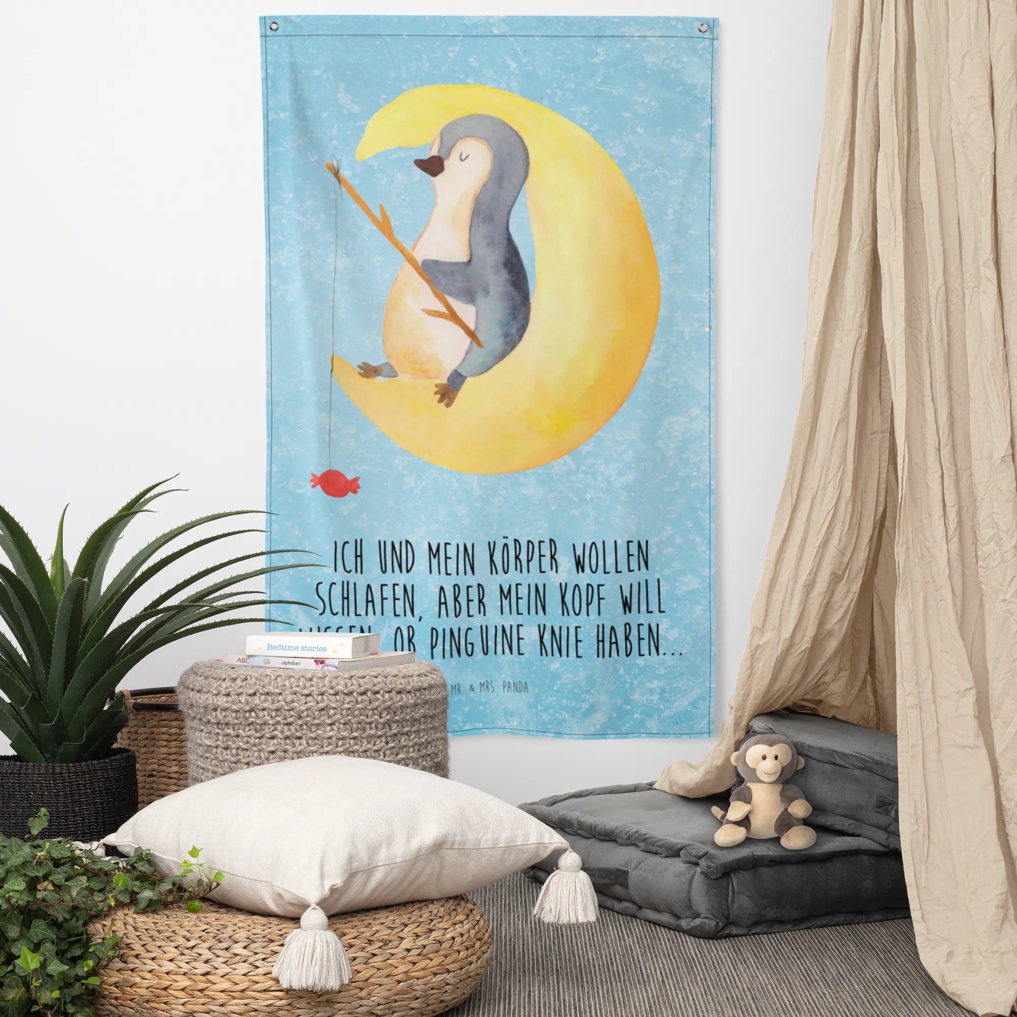 Wandteppich Pinguin Mond - mit Spruch - Eisblau