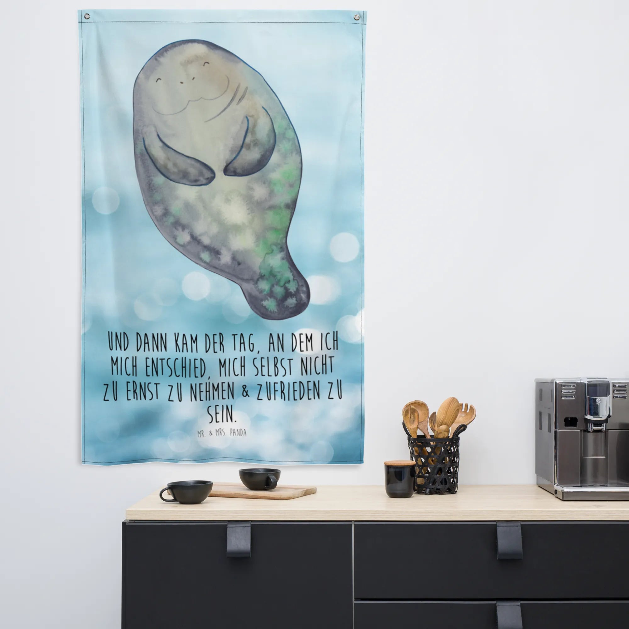 Verleihe deinem Wohnraum mit dem beeindruckenden Wandteppich von Mr. & Mrs. Panda eine neue Dimension! Dieser hochwertige Wandteppich misst 1500 mm x 900 mm x 5 mm und ist aus langlebiger Kunstfaser gefertigt. Er stammt aus einer limitierten Kollektion und ist mit tollen Sprüchen und niedlichen Motiven bedruckt, die jeden Raum erhellen. Egal, ob im Wohnzimmer, Kinderzimmer oder Gästezimmer, dieser Wandteppich ist die perfekte Wahl, um deinen Wänden Charakter zu verleihen. Die super leuchtenden Farben und die hohe Qualität machen ihn zu einem einzigartigen Kunstwerk. Mit einem einseitigen Druck und einem doppelten Faltsaum ist dieser Teppich nicht nur schön, sondern auch äußerst praktisch. Außerdem ist er knitterfrei und kann bei maximal 30 °C in der Waschmaschine gewaschen werden – perfekt für die einfache Pflege! Mit den 2 robusten Eisenösen lässt sich der Teppich ganz unkompliziert aufhängen. Lass deine Wände sprechen mit diesem wunderbaren Wandteppich!