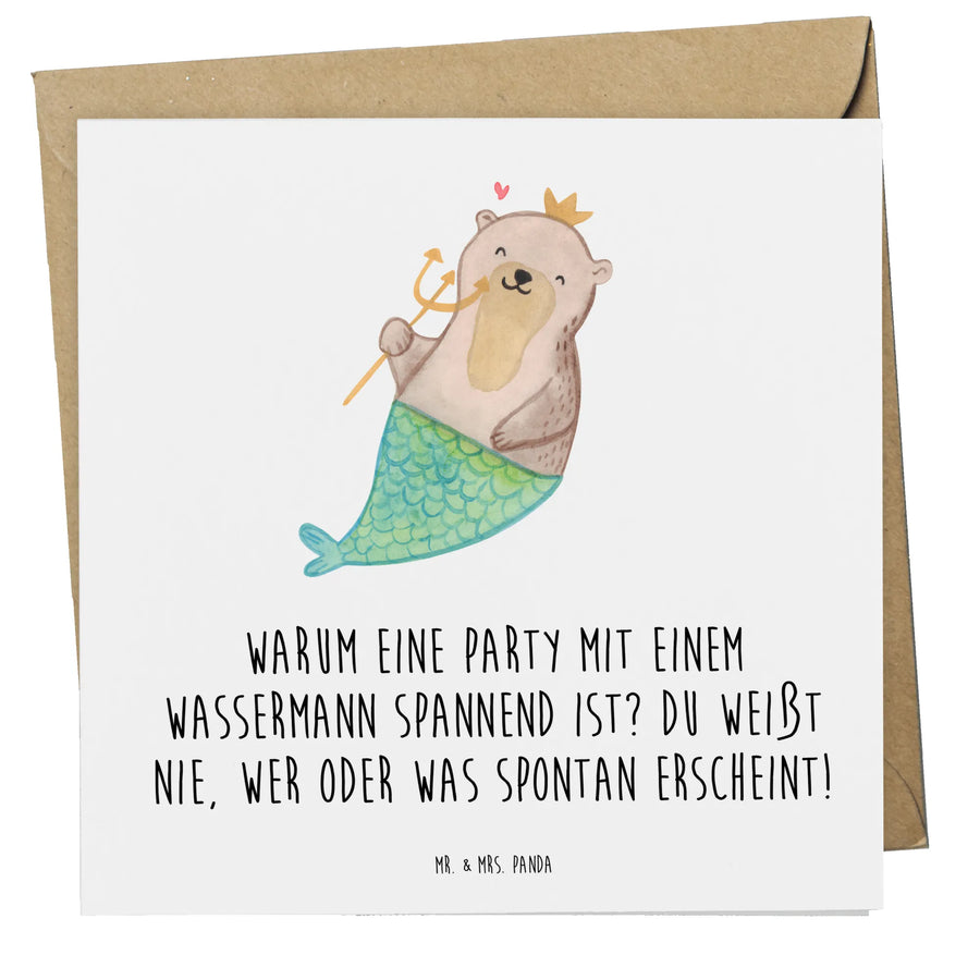 Die Deluxe Karte Wassermann von Mr. & Mrs. Panda ist der perfekte Gruß für jeden Wassermann-Fan! Mit einem einzigartigen Design und dem Spruch 'Warum eine Party mit einem Wassermann spannend ist? Du weißt nie, wer oder was spontan erscheint!' macht diese Karte jeden Anlass zu etwas Besonderem.