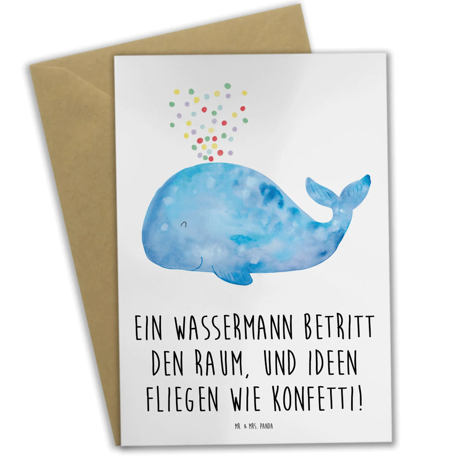 Entdecke die zauberhafte Grußkarte Wassermann von Mr. & Mrs. Panda! Diese wunderschöne und einzigartige Grußkarte ist mit dem charmanten Spruch 'Ein Wassermann betritt den Raum, und Ideen fliegen wie Konfetti!' bedruckt. Perfect for jeden besonderen Anlass, sei es ein Geburtstag, eine Hochzeit oder einfach als kleine Aufmerksamkeit für einen lieben Menschen.