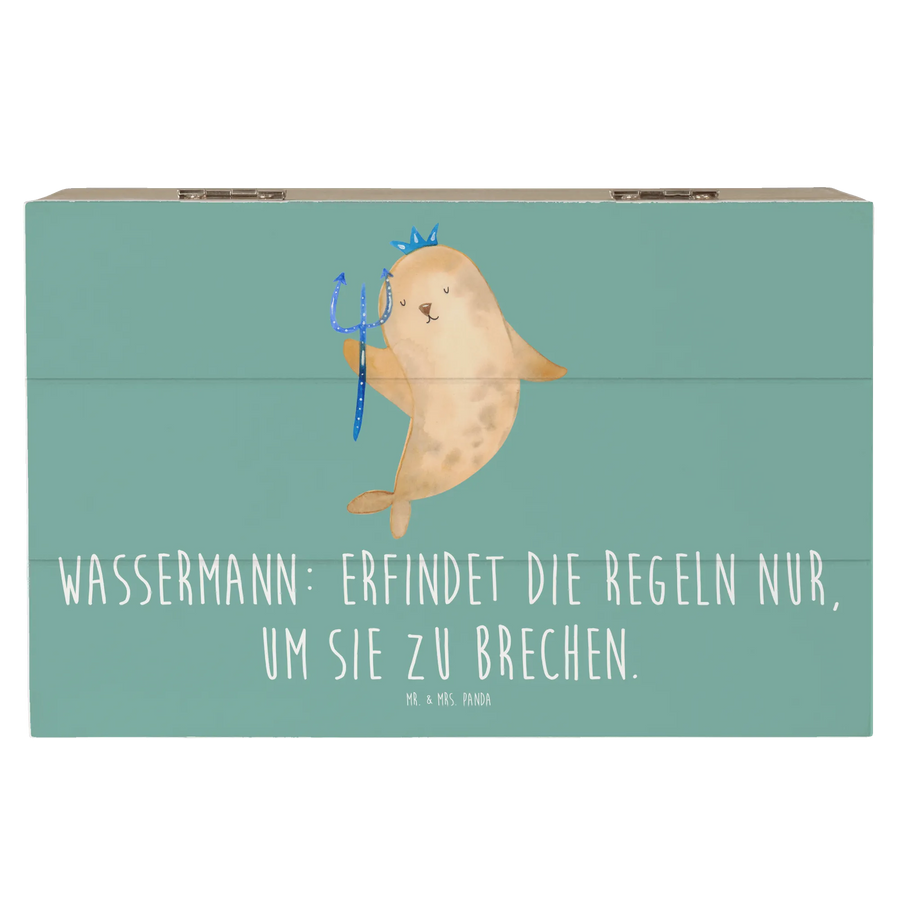 Die wunderschöne Holzkiste Wassermann von Mr. & Mrs. Panda ist das perfekte Geschenk für alle Wassermann-Liebhaber und Astrologie-Fans! Mit einem charmanten Design und dem wertvollen Spruch 'Wassermann: Erfindet die Regeln nur, um sie zu brechen.' ist diese Kiste nicht nur praktisch, sondern auch ein echter Blickfänger.