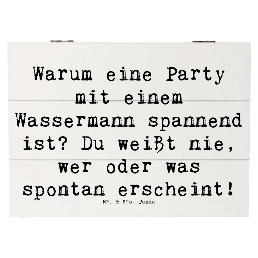 Die wunderschöne Holzkiste von Mr. & Mrs. Panda ist das perfekte Geschenk für alle Wassermann-Geborenen! Mit ihrem charmanten Motiv und dem liebevoll gestalteten Slogan "Warum eine Party mit einem Wassermann spannend ist? Du weißt nie, wer oder was spontan erscheint!" bringt diese Kiste gute Laune und einen Hauch von Magie in jeden Raum.
