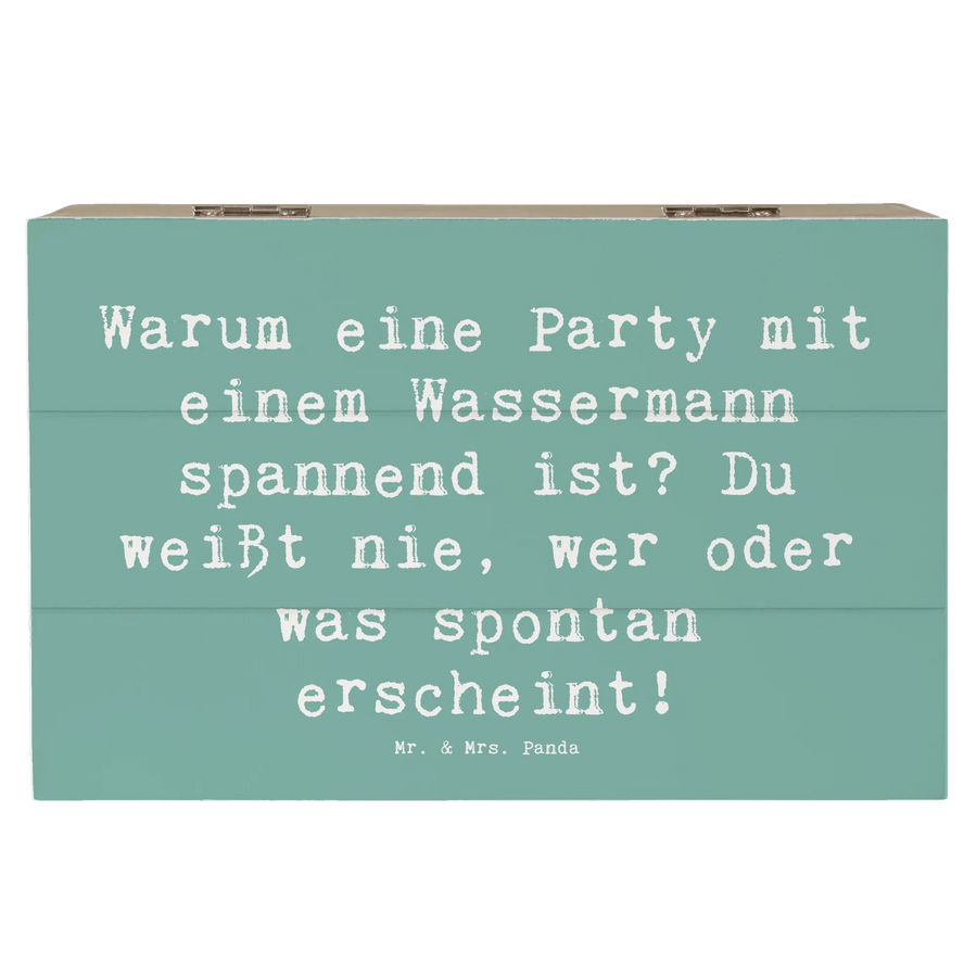 Die wunderschöne Holzkiste von Mr. & Mrs. Panda ist das perfekte Geschenk für alle Wassermann-Geborenen! Mit ihrem charmanten Motiv und dem liebevoll gestalteten Slogan "Warum eine Party mit einem Wassermann spannend ist? Du weißt nie, wer oder was spontan erscheint!" bringt diese Kiste gute Laune und einen Hauch von Magie in jeden Raum.