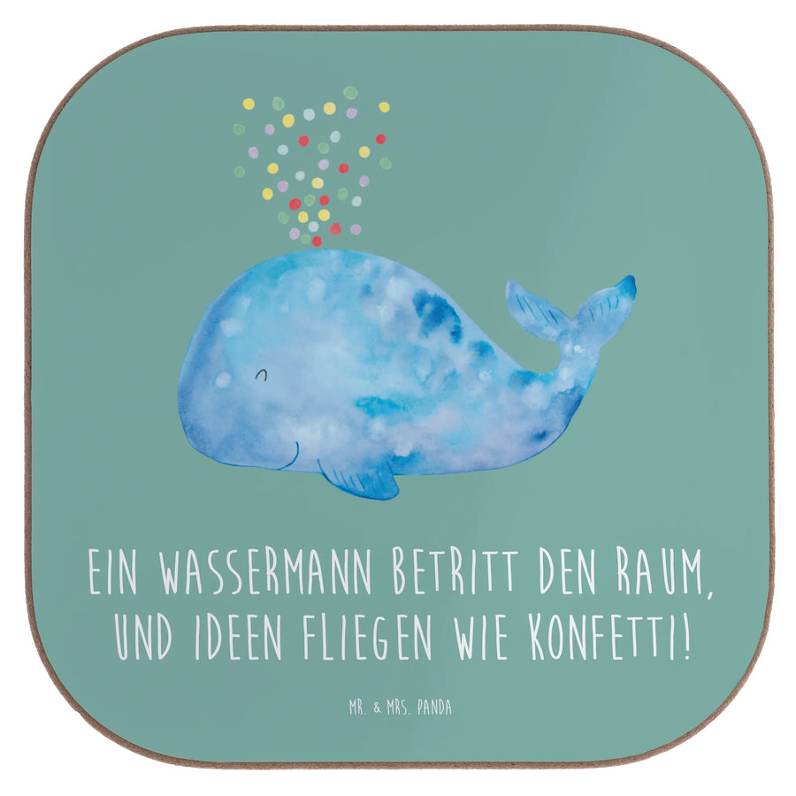 Ein wundervoller Untersetzer von Mr. & Mrs. Panda: Unser quadratischer Wassermann-Untersetzer aus der Sternzeichen-Kollektion vereint liebevolle Illustration mit praktischem Nutzen. Der fröhliche Spruch „Ein Wassermann betritt den Raum, und Ideen fliegen wie Konfetti!“ macht ihn zum perfekten Geschenk für alle Astrologie-Fans und kreativen Köpfe.
