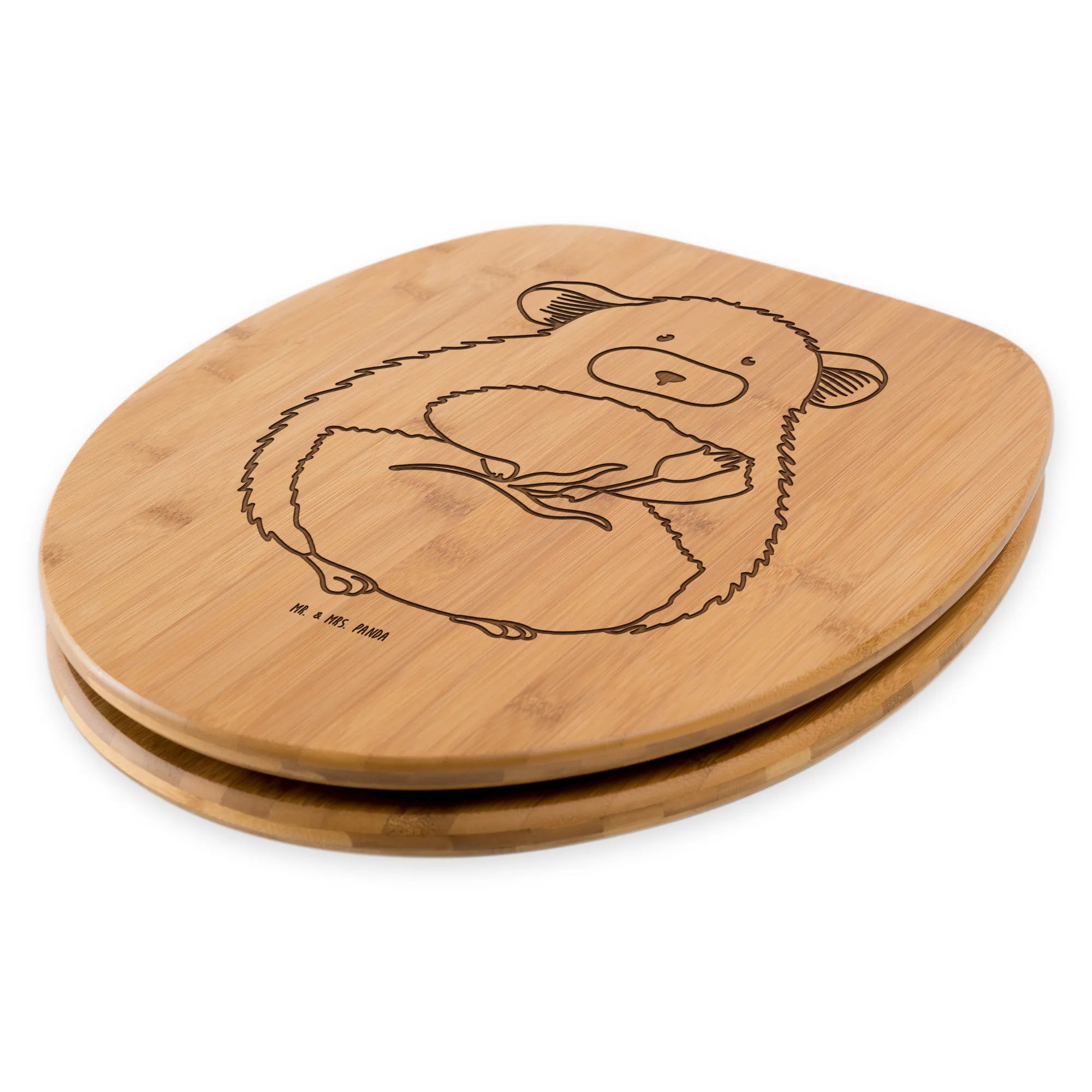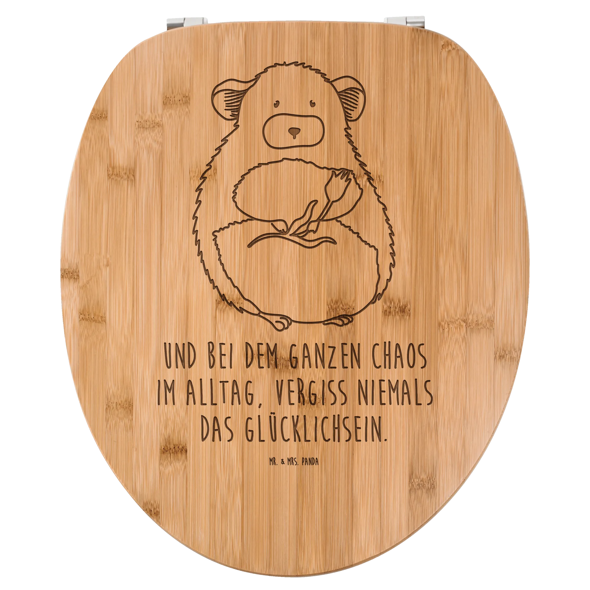 Dieser wunderschöne und praktische WC Sitz von Mr. & Mrs. Panda bringt Freude in dein Badezimmer. Er ist mit niedlichen Sprüchen und Motiven bedruckt, die deinem Klo eine ganz besondere Note verleihen. Der Toilettensitz hat die Maße von 430 mm x 370 mm x 50 mm und ist in zwei attraktiven Materialien erhältlich: braunes Bambus Holz oder weißes MDF Holz. Ganz egal, für welches Design du dich entscheidest, dieser Sitz bietet hohen Komfort und selbst bei kühlen Temperaturen bleibt die Sitzfläche angenehm warm. Dank des lang anhaltenden UV Drucks und des versiegelten Holzes ist der Sitz langlebig und pflegeleicht. Die Universalscharniere sorgen dafür, dass der Deckel auf jedes Euro-WC-Becken passt. Befestigungsmaterial ist im Lieferumfang enthalten und die Montage ist kinderleicht. Nach der Verwendung kannst du den Sitz einfach mit einem feuchten Tuch und handelsüblicher Seife abwischen. Verleihe deinem Badezimmer mit diesem einzigartigen WC Sitz von Mr. & Mrs. Panda einen Hauch von Lebensfreude!